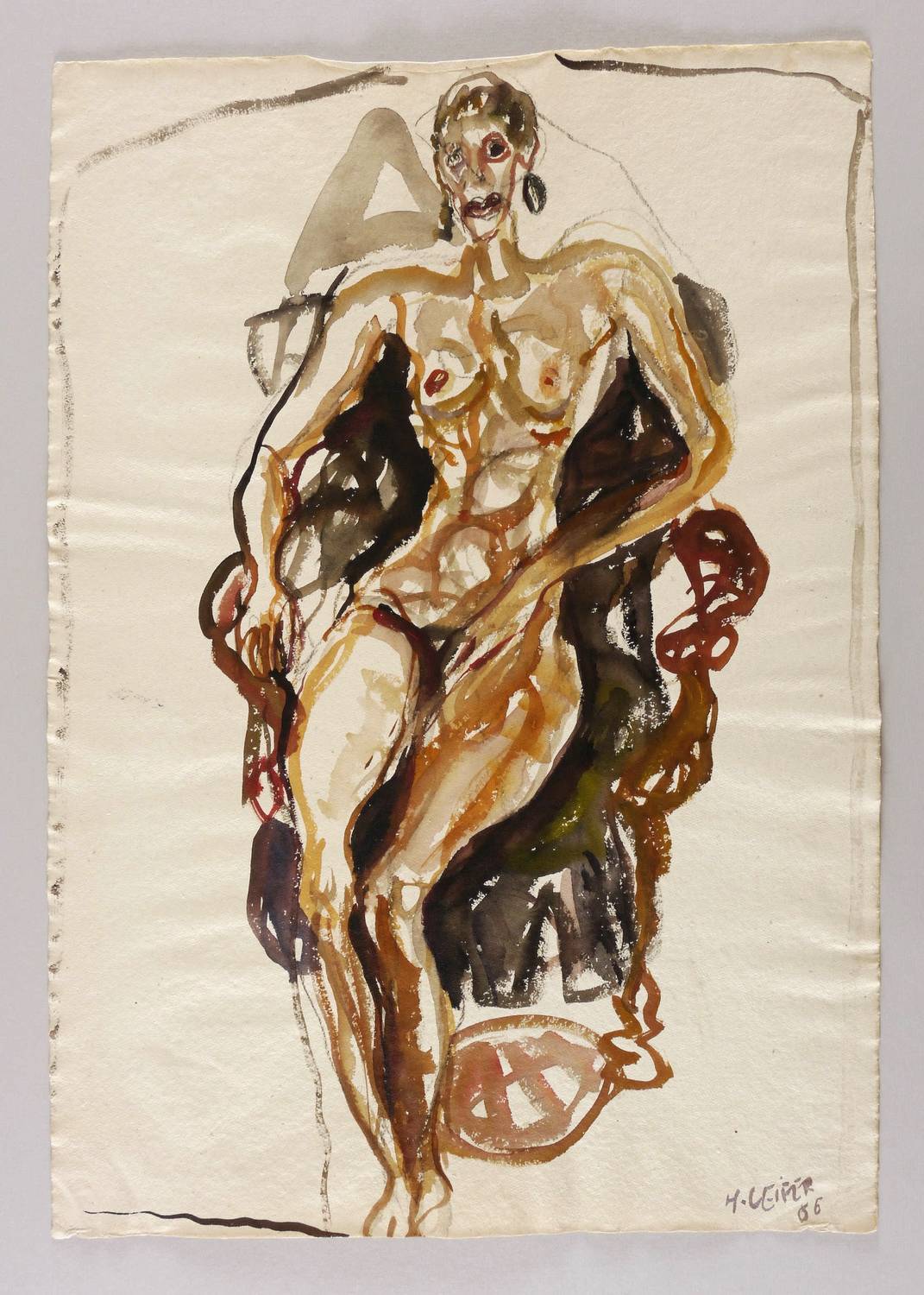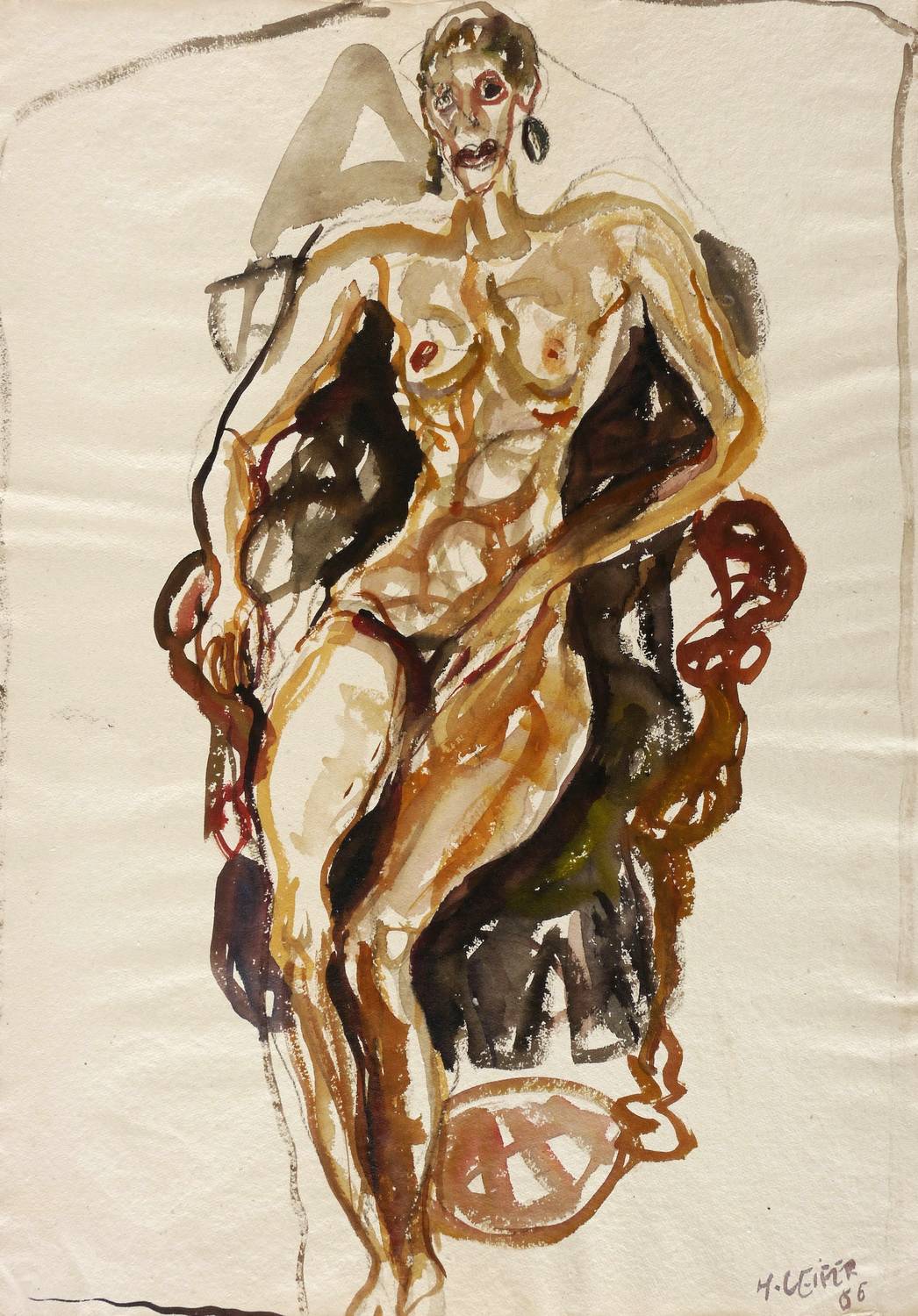 Leifer, Horst. – „Akt mit Ohrringen im Sessel”.
