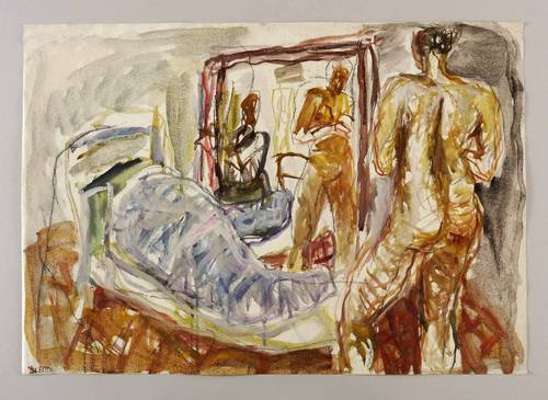 1975-1980. Mischtechnik / Aquarell, Tusche & Kreide, auf festem hellgelbem Velinkarton. – Originale Künstlergrafik, von Horst Leifer. – Unikat. – 42,0 x 60,0 cm (Darstellung / Blatt).