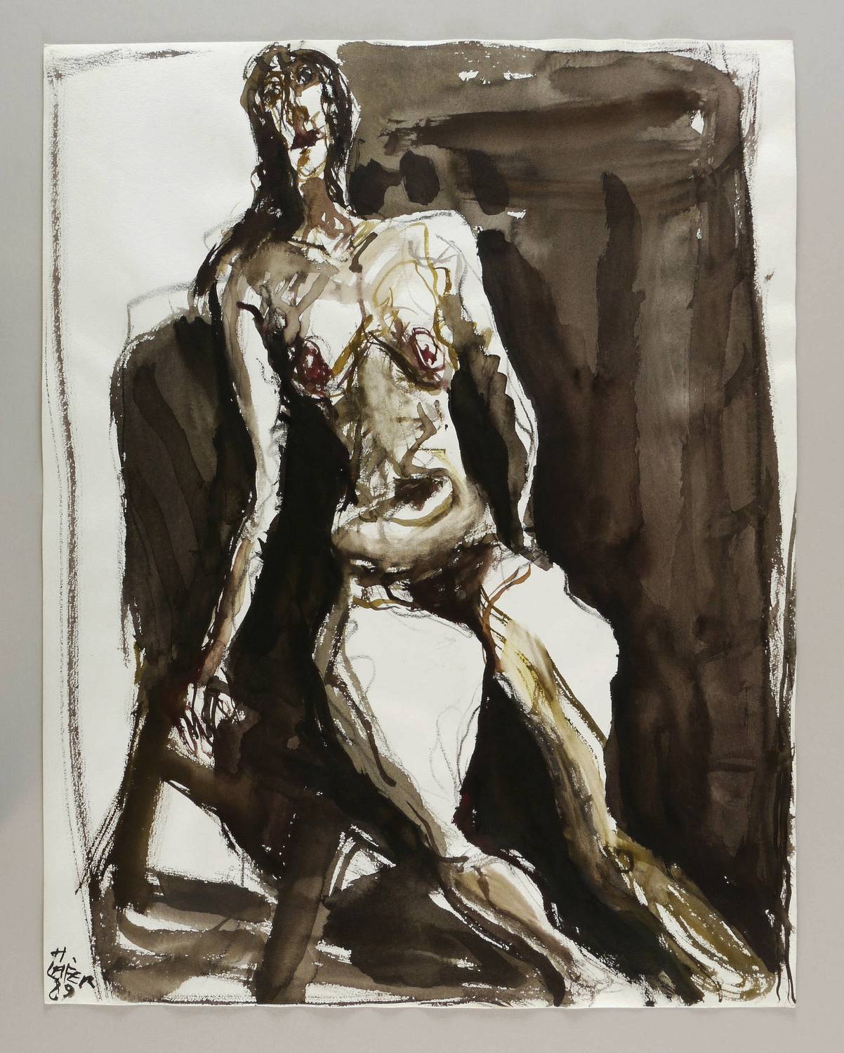 1989. Mischtechnik / Tusche & Aquarell, auf hartem weißem Velinkarton. – Originale Künstlergrafik, von Horst Leifer. – Unikat. – 63,8 x 49,8 cm (Darstellung / Blatt).