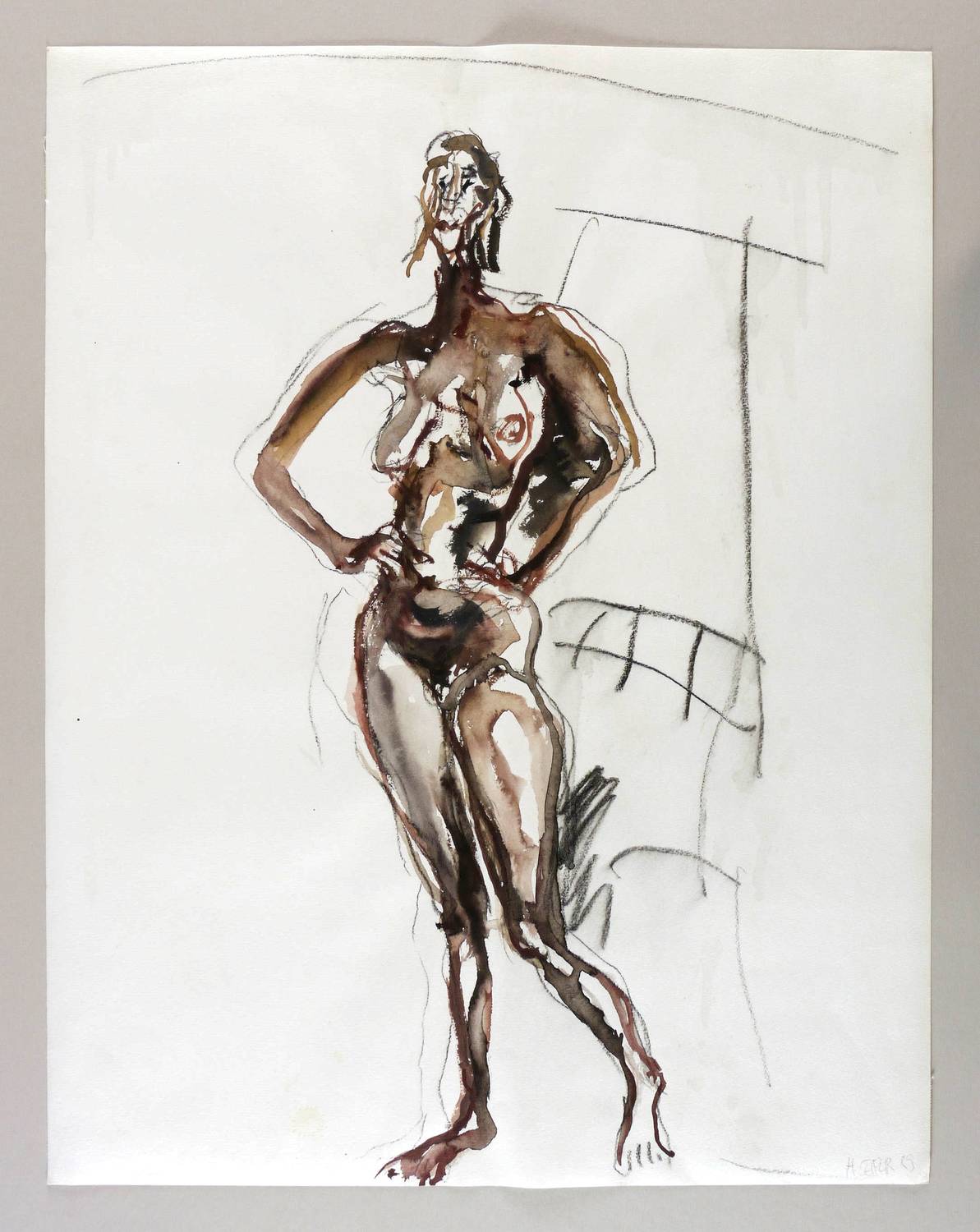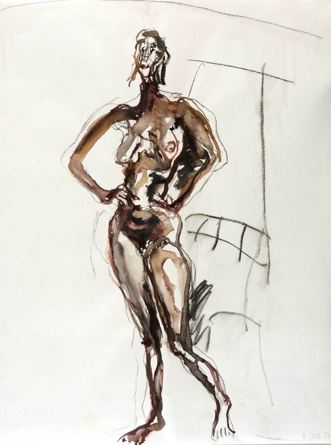 Leifer, Horst. – „Stehender Akt mit eingestützten Armen”.