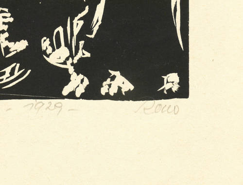 Rechts unten in Bleistift signiert: ″Rocco″. Links bezeichnet und datiert: ″Alte Bäuerin im Feld - 1929″. – Provenienz: Sammlung Erhard Frommhold, Dresden. – Sehr guter Zustand.