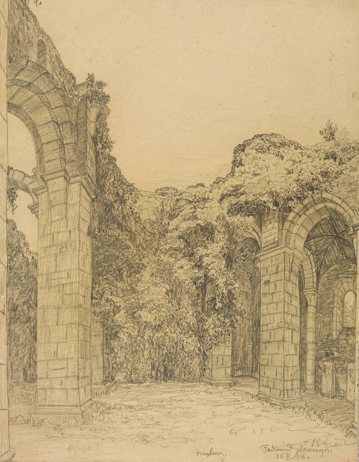 Rechts unten in Bleistift signiert und datiert: ″Ferdinand Steiniger 28. IV. 1916.″ Daneben betitelt: ″Arnsburg″. – Sehr guter Zustand.