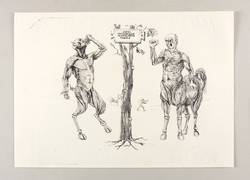 1957. Lithografie / Kreidelithografie, partiell geschabt, in Schwarz, auf leichtem hellchamois Velin. – Originale Künstlergrafik, von Hans Escher. – Auflage Exemplar Nr. 3/12. – 27,3 x 36,2 cm (Darstellung / Druckbild), 34 x 48 cm (Blatt).