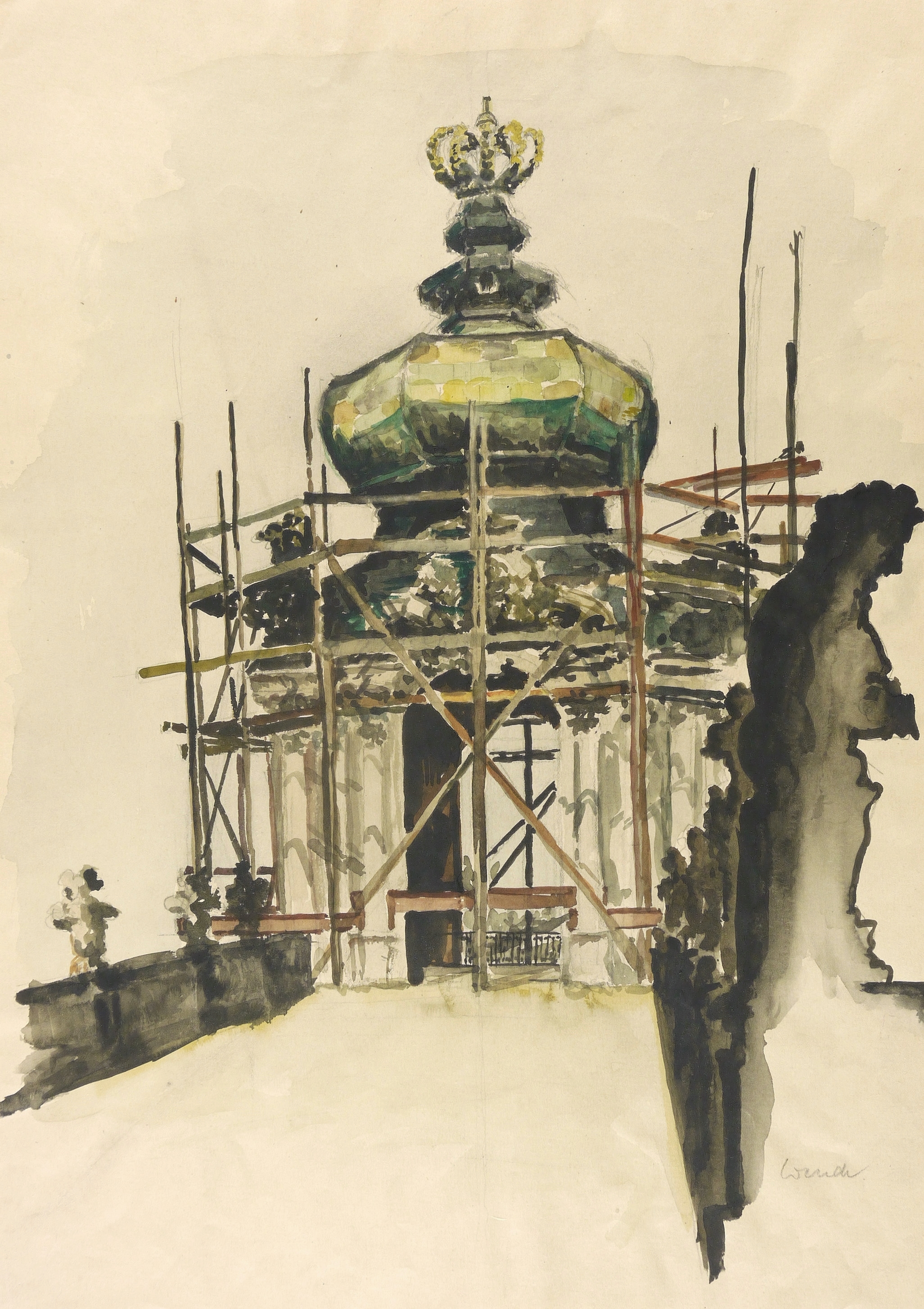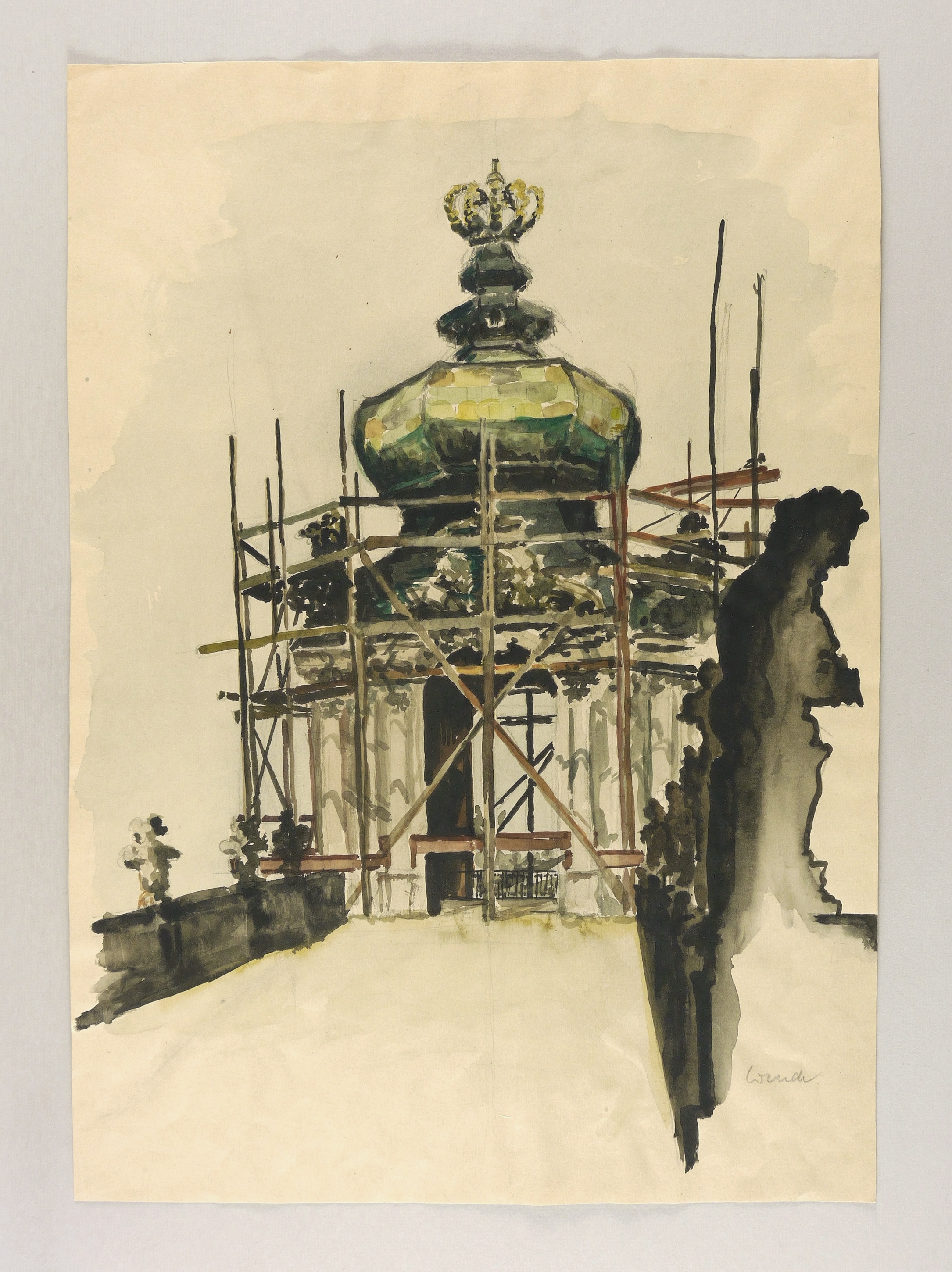 Deutscher Maler. – „Eingerüstetes Kronentor (Zwinger Dresden)”.