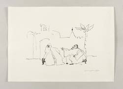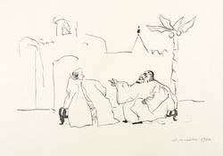 1974. Lithografie / Pinsellithografie, in Schwarz, auf hellgetöntem Hahnemühle. – Originale Künstlergrafik, von Arno Mohr. – 16,7 x 27,7 cm (Darstellung / Druckbild), 30 x 42 cm (Blatt).