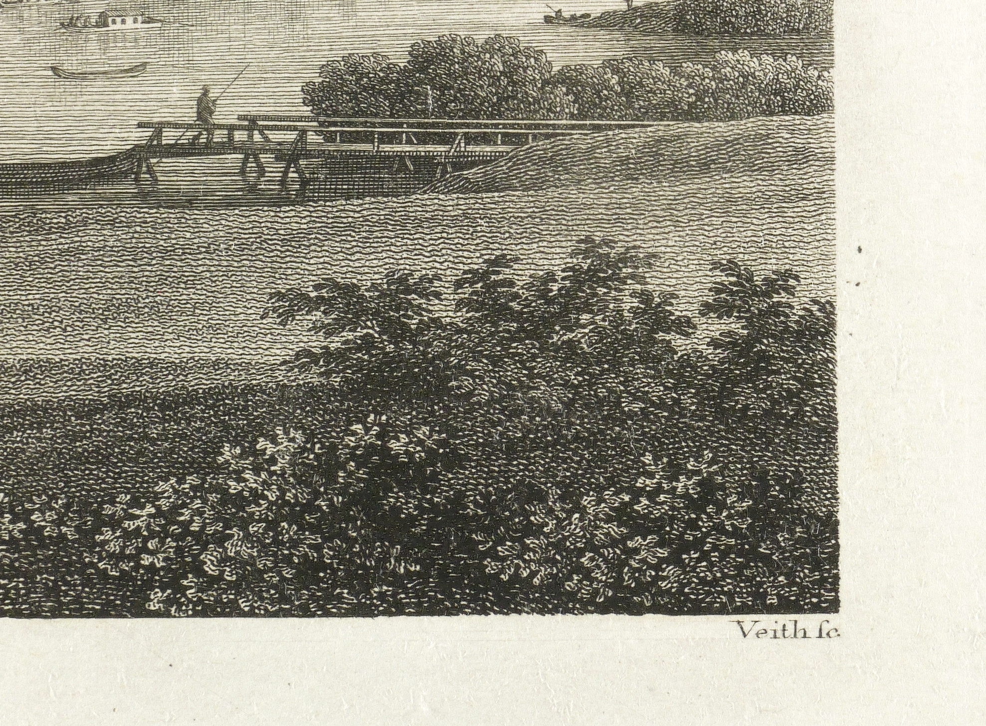 1808. Radierung / Strichätzung. – Historische Ortsansicht, von Johann Philipp Veith. – 15,8 x 23,5 cm (Darstellung), 19,8 x 26,1 cm (Platte), 24 x 35 cm (Blatt).
