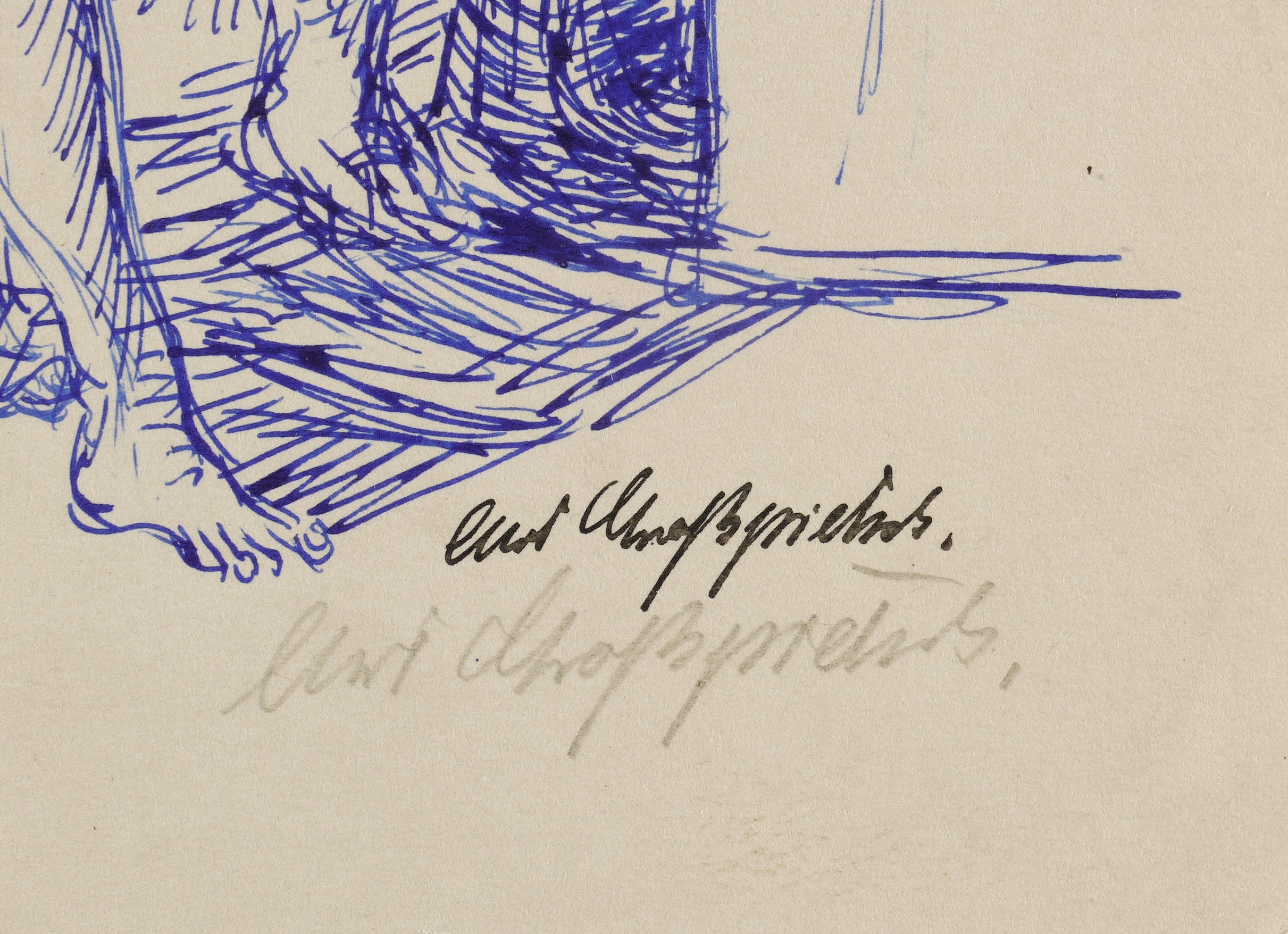 Um 1920. Zeichnung / Federzeichnung, in blauer Tinte, auf glattem hellgrauem Velin. – Originale Künstlergrafik, von Curt Großpietsch. – Unikat. – 24,1 x 15,9 cm (Darstellung / Blatt).