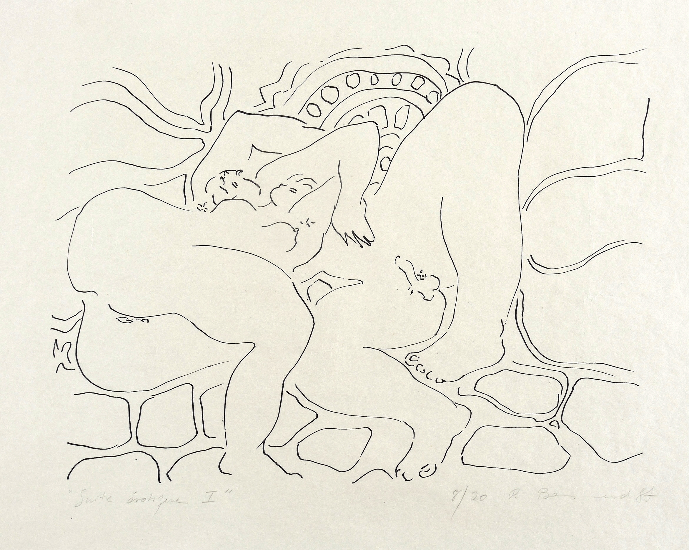 Rechts unten in Bleistift signiert und datiert: ″R. Bonnard 87″. Daneben Auflagenbezeichnung: ″8/20″. Links TItel: ″Suite érotique I″. – Schönes Exemplar. Sehr guter Zustand.