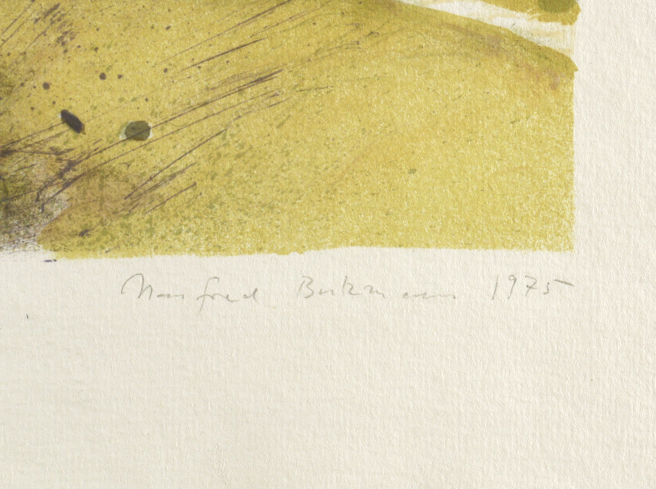 1975. Farblithografie / Pinsel- & Kreidelithografie, in 6 Farben, auf hartem hellchamois Weißenborn. – Originale Künstlergrafik, von Manfred Butzmann. – Auflage Exemplar Nr. 11/25. – 39,6 x 42,8 cm (Darstellung / Druckbild), 47 x 51 cm (Blatt).