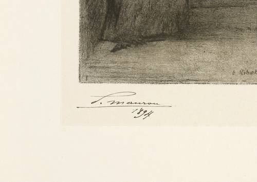 1894. Lithografie / Kreidelithografie, in Schwarz, auf gewalztem China, auf Kupferdruckkarton. – Originale Künstlergrafik, von Paul Maurou. – 63 x 48 cm (Blatt), 31,0 x 18,5 cm (Stein), 18,8 x 11,6 cm (Darstellung / Druckbild).
