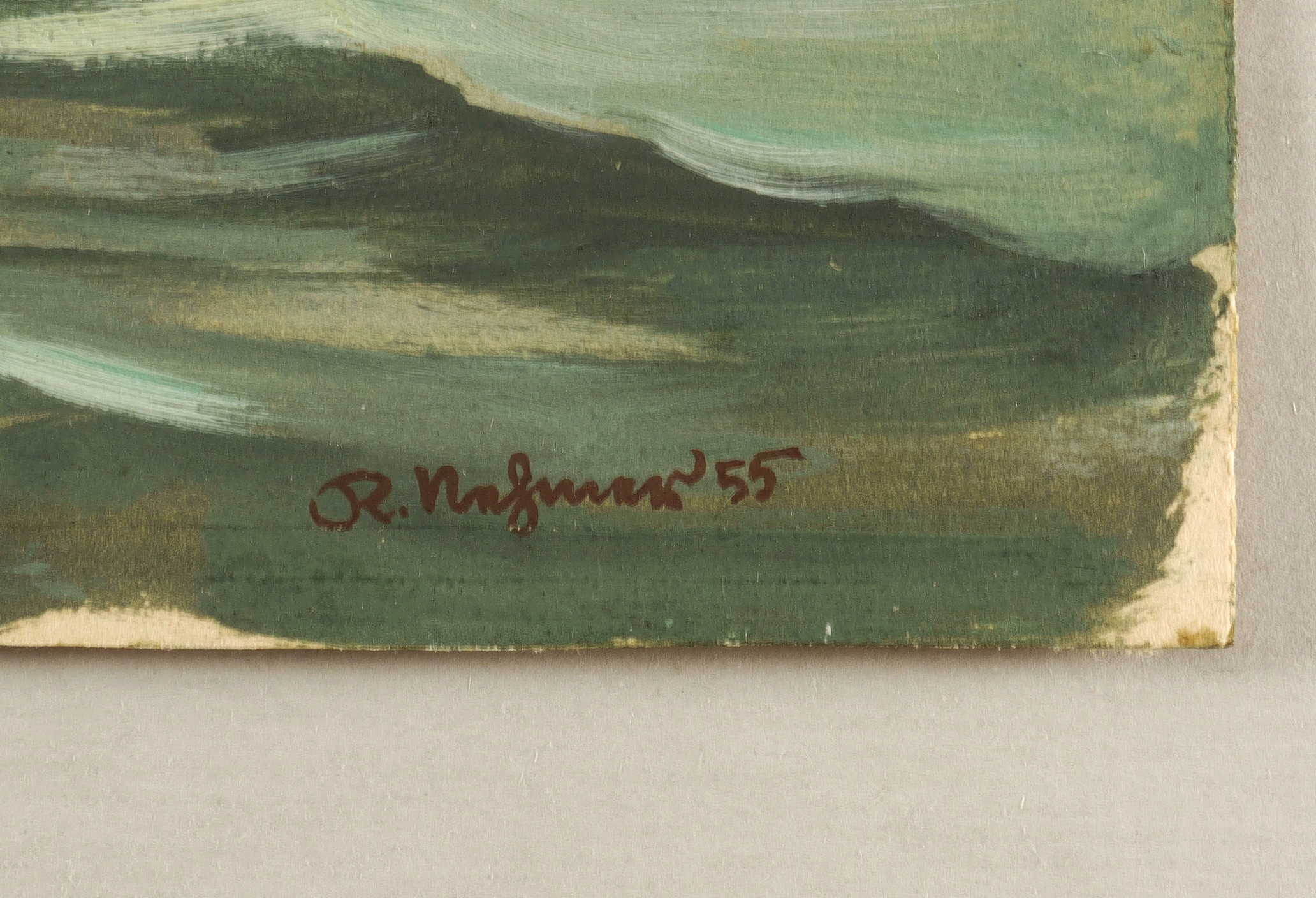 Rechts unten in Faserstift signiert und datiert: ″R. Nehmer 55″. – Verso im Blattrand Rahmungsspuren. Guter Zustand.
