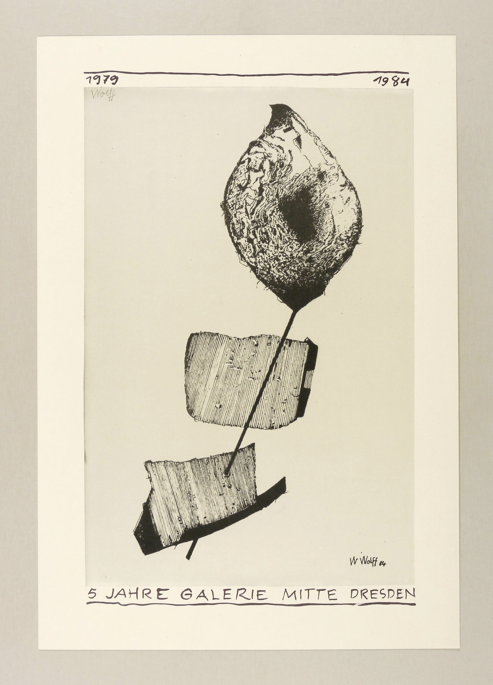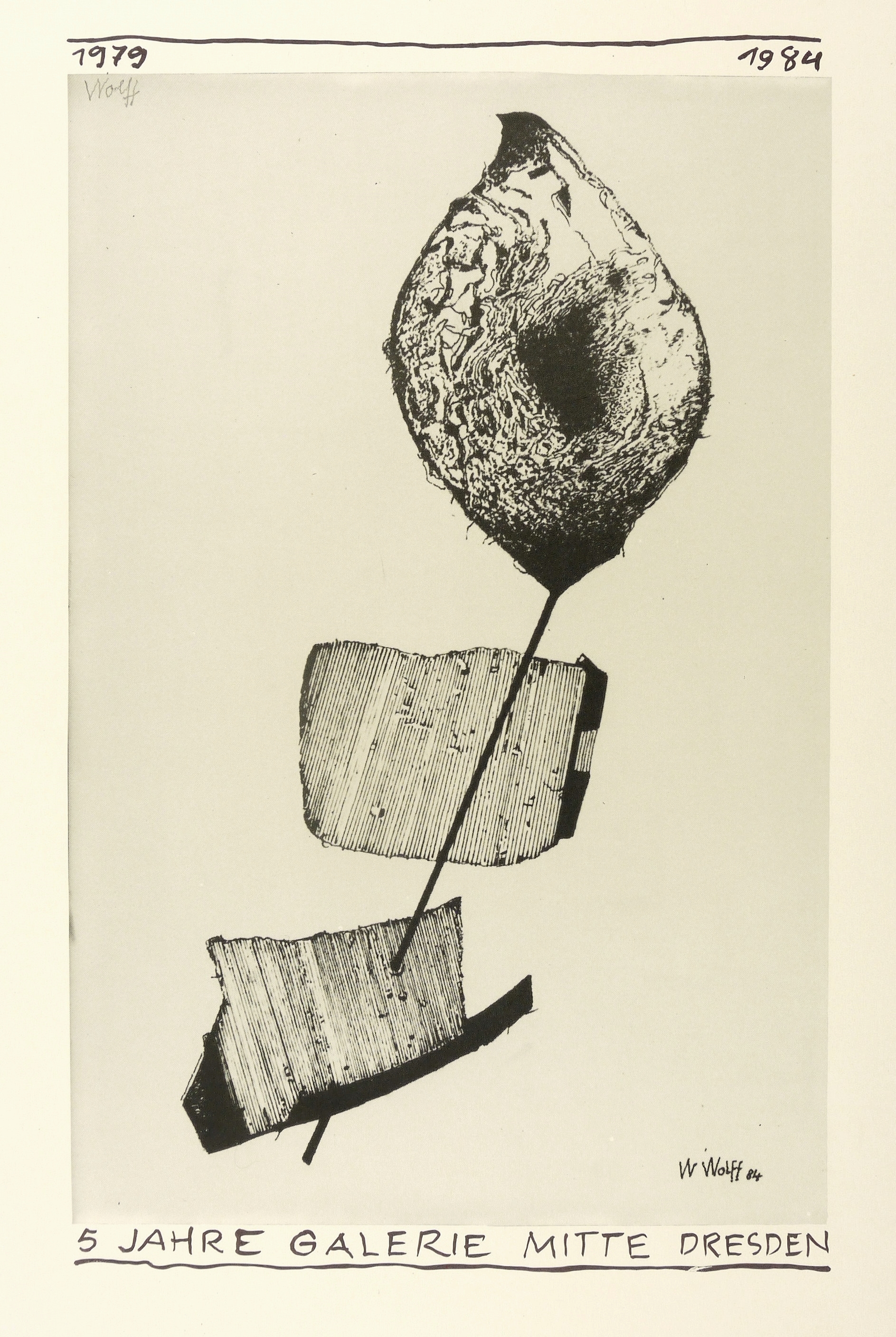 Links oben in Bleistift signiert: ″Wolff″. – Signiertes Künstlerplakat zu Jubiläums- Ausstellung der Galerie Mitte in Dresden. – Sehr guter Zustand.