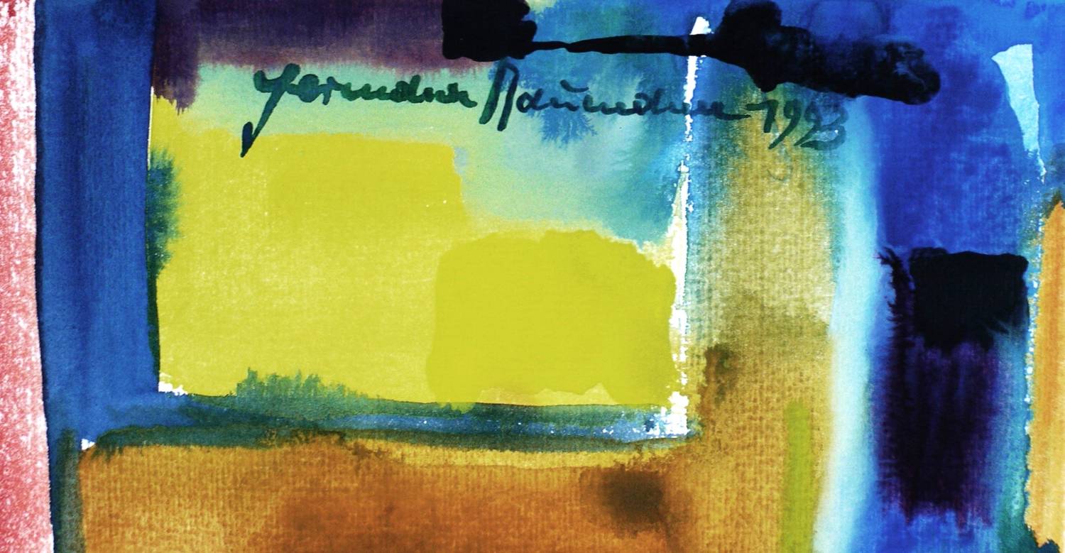 Rechts oben mit Pinsel in Grün signiert und datiert: ″Hermann Naumann 1993″. Auf dem Trägerkarton unten links in Bleistift betitelt. – Vom Künstler auf Trägerkarton montiert. Sehr schön erhalten. Sehr guter Zustand.