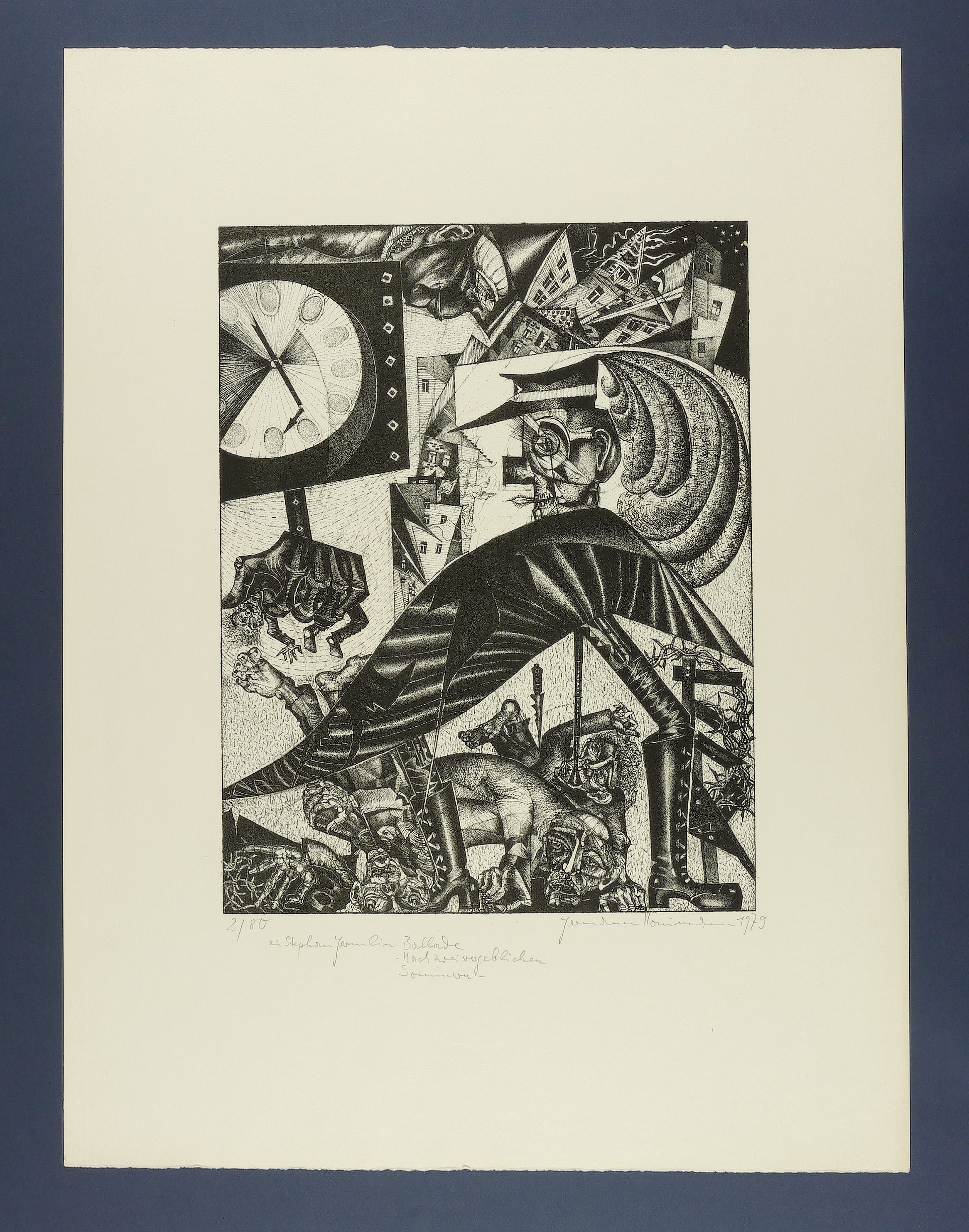1979. Lithografie / Federlithografie, in Punktiermanier, in Schwarz, auf gelblichem Velin. – Originale Künstlergrafik, von Hermann Naumann. – Auflage Exemplar Nr. 2/80. – 41,5 x 32,5 cm (Darstellung / Druckbild), 69 x 51 cm (Blatt).