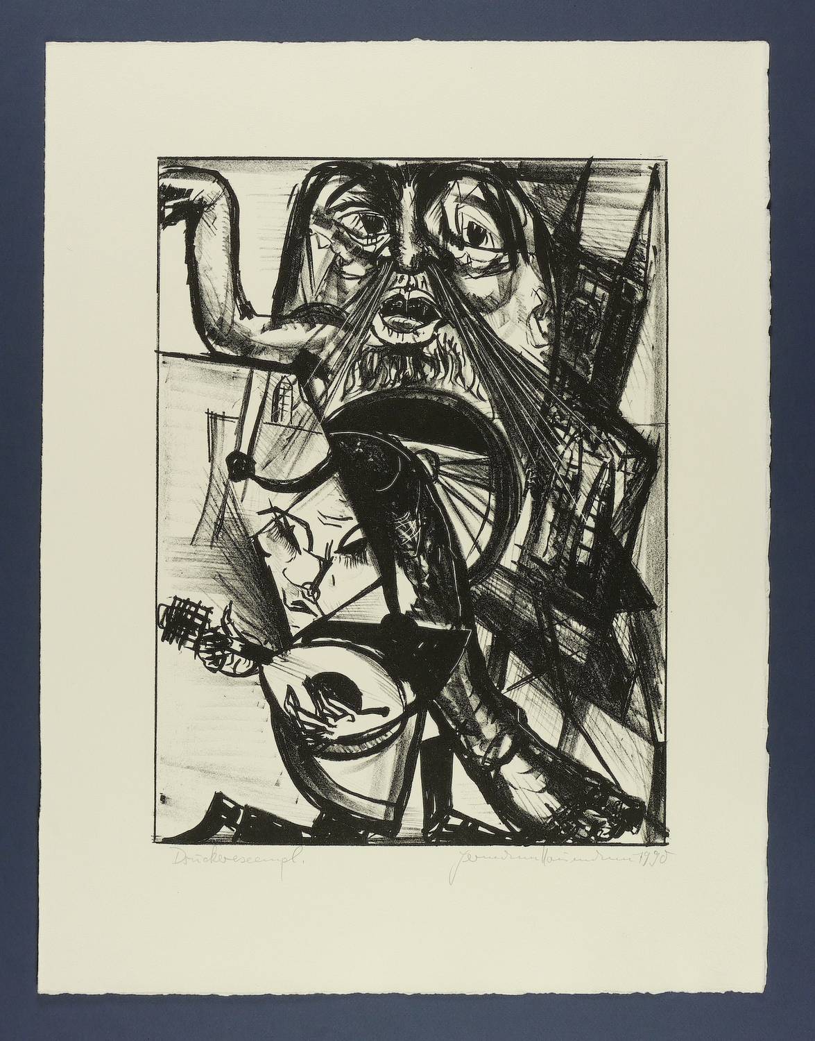 1990. Lithografie / Kreidelithografie, in Schwarz, auf Hahnemühle-Bütten. – Originale Künstlergrafik, von Hermann Naumann. – Druckerexemplar. – 47,0 x 35,0 cm (Darstellung / Stein), 65 x 49,5 cm (Blatt).
