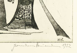 Aus: Hermann Naumann, Grafik zu Franz Kafka. Grafik-Edition XXI (Leipzig: Reclam 1985). – Rechts unten in Bleistift signiert und datiert. Links Auflagenbezeichnung. In der Platte rechts unten Monogramm. – Sehr guter Zustand.
