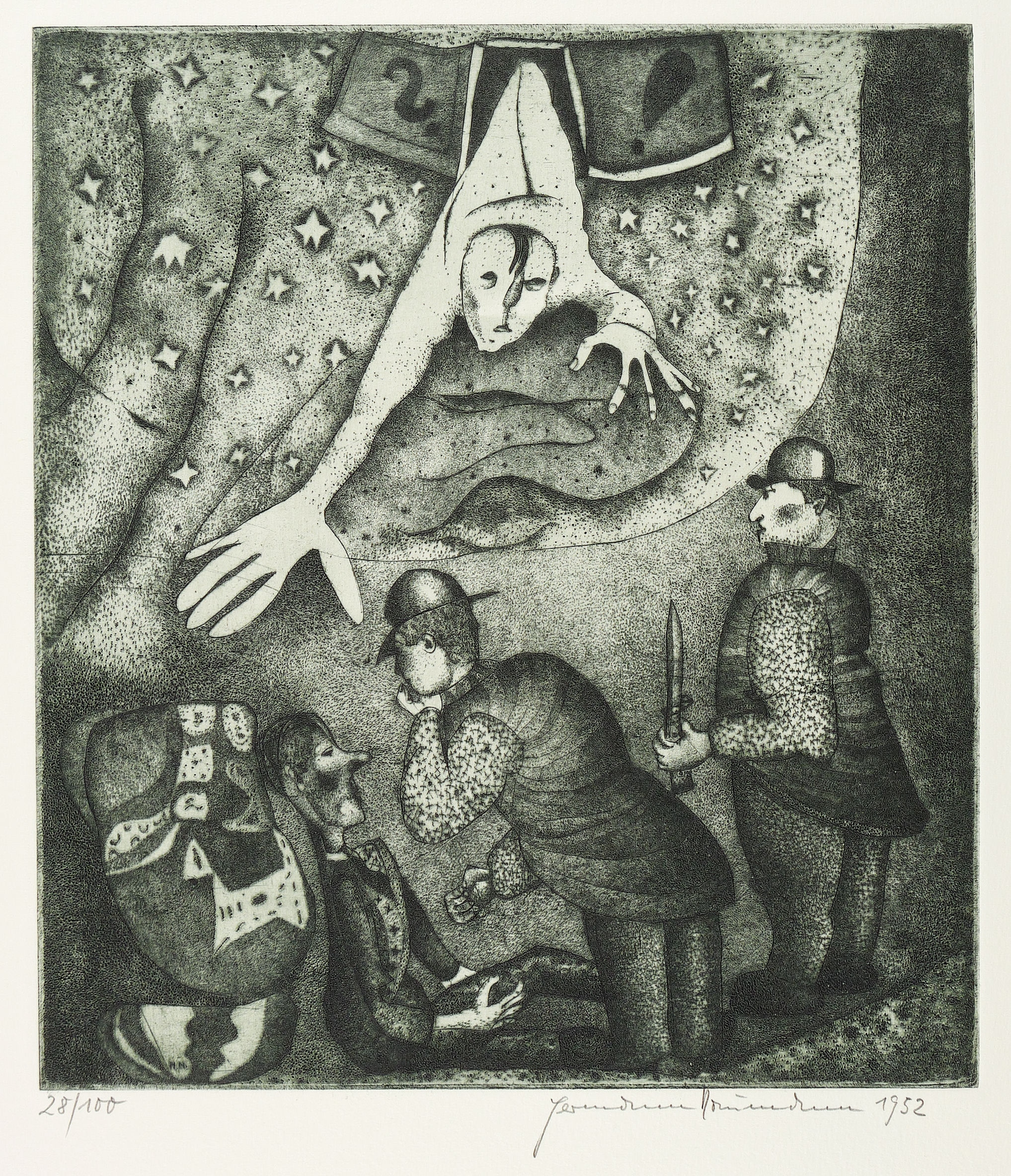 1952. Kupferstich / Linien- & Punzenstich, in Schwarz, auf hellchamois Bütten. – Originale Künstlergrafik, von Hermann Naumann. – Auflage Exemplar Nr. 28/100. – 29,6 x 26,2 cm (Darstellung / Platte), 50 x 39 cm (Blatt).
