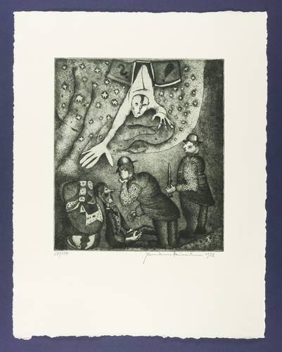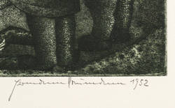 Aus: Hermann Naumann, Grafik zu Franz Kafka. Grafik-Edition XXI (Leipzig: Reclam 1985). – Rechts unten in Bleistift signiert und datiert. Links Auflagenbezeichnung. – Sehr guter Zustand.