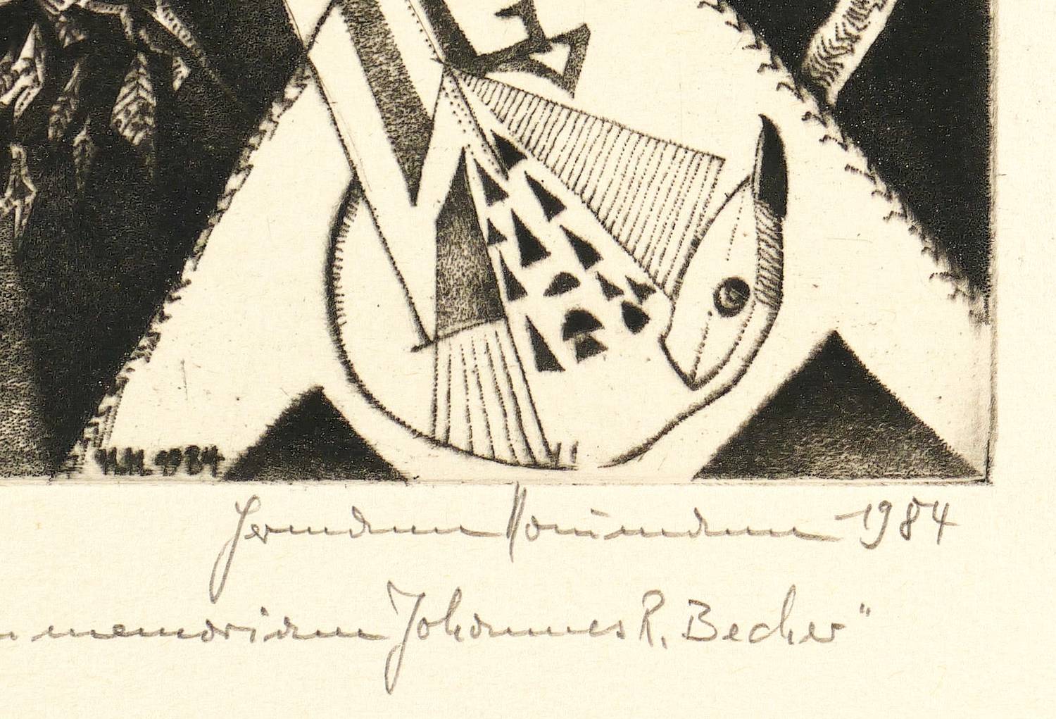 1984. Kupferstich / Punzenstich, in Schwarz, auf gelblichem Büttenpapier. – Originale Künstlergrafik, von Hermann Naumann. – Auflage Exemplar Nr. 28/100. – 24,4 x 18,2 cm (Darstellung / Platte), 48 x 36 cm (Blatt).