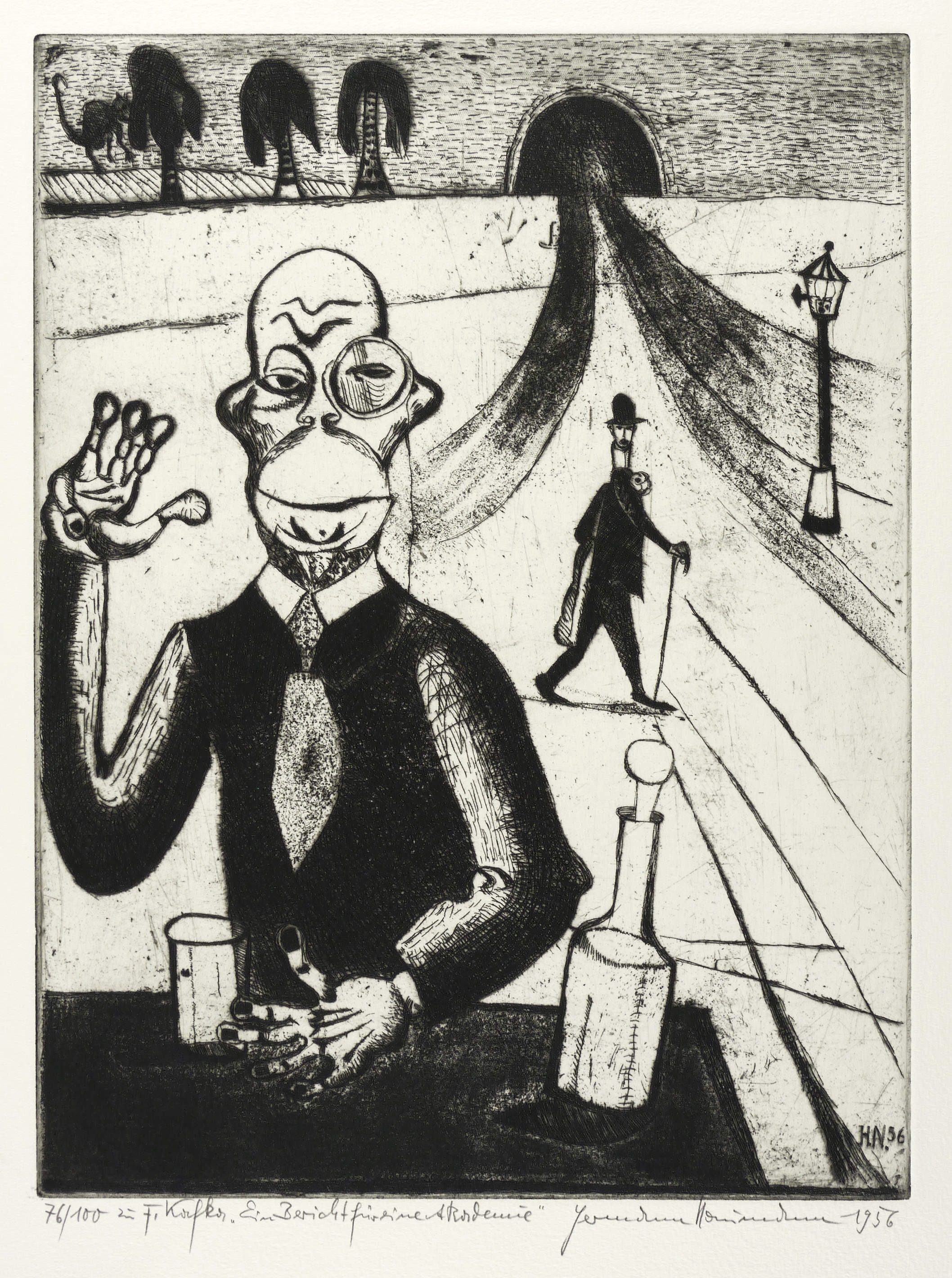 Naumann, Hermann. – Grafik zu Franz Kafka. – „Ein Bericht für eine Akademie”.