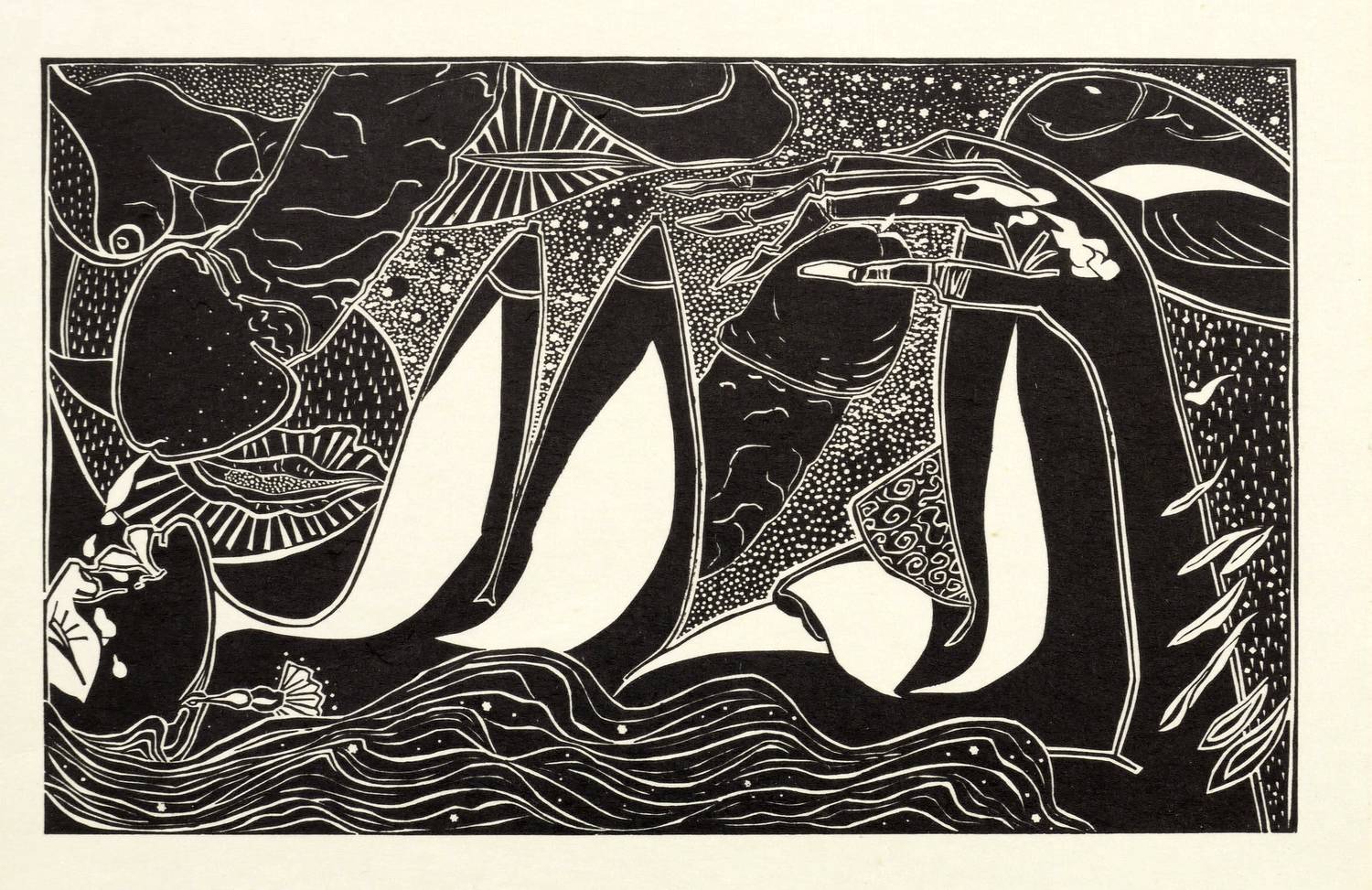 Um 1970. Cliché / Zinkätzung, in Schwarz, auf Karton. – Originale Künstlergrafik, von Hermann Naumann. – 8,3 x 13,5 cm (Darstellung / Druckbild), 10,6 x 14,9 cm (Blatt).