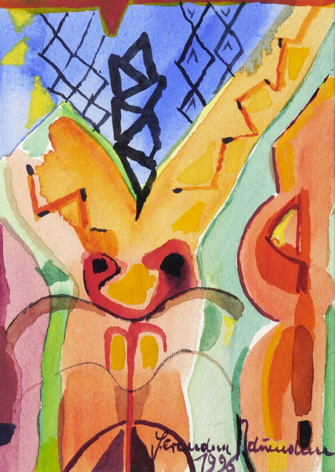 1996. Zeichnung / Aquarell & Tusche, auf Aquarellkarton. – Von Hermann Naumann. – 15,0 x 10,7 cm (Darstellung / Blatt).