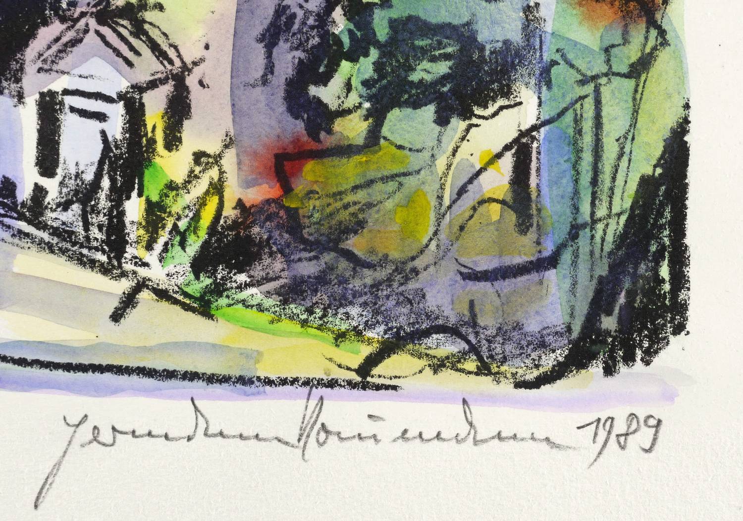 1992. Lithografie / Kreidelithografie, in Aquarellfarben koloriert, auf Büttenpapier. – Originale Künstlergrafik, von Hermann Naumann. – Unikat. – 20,0 x 28,5 cm (Darstellung / Druckbild), 27 x 35 cm (Blatt).