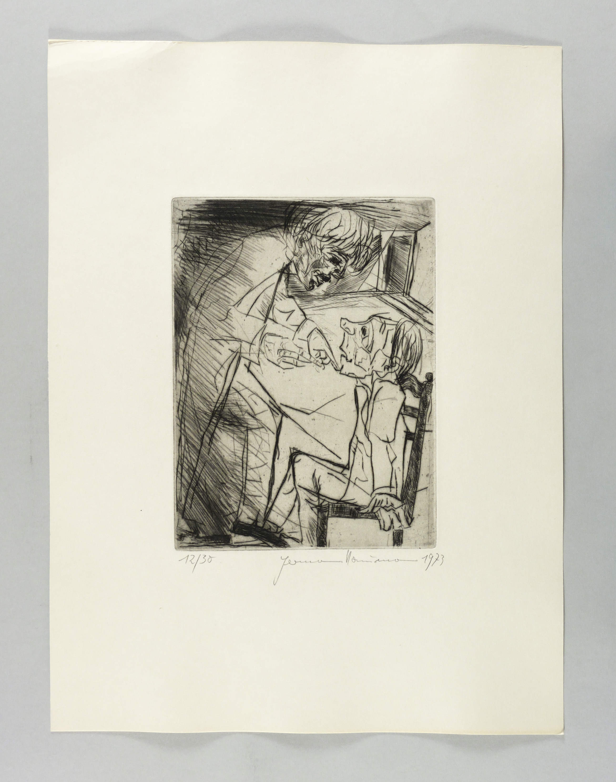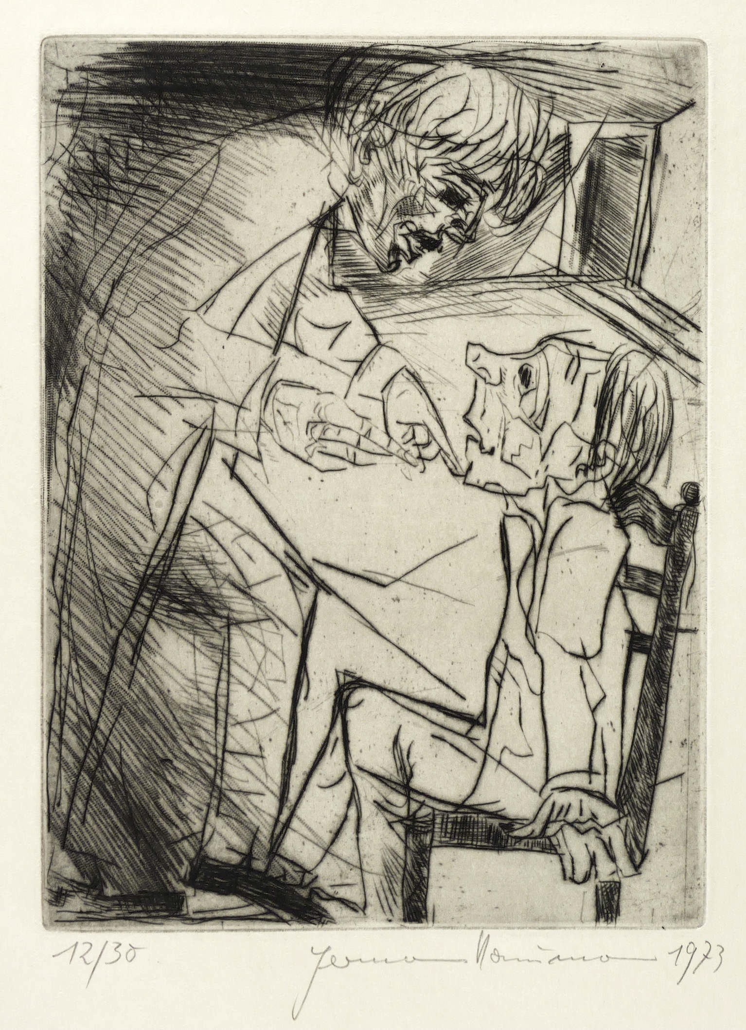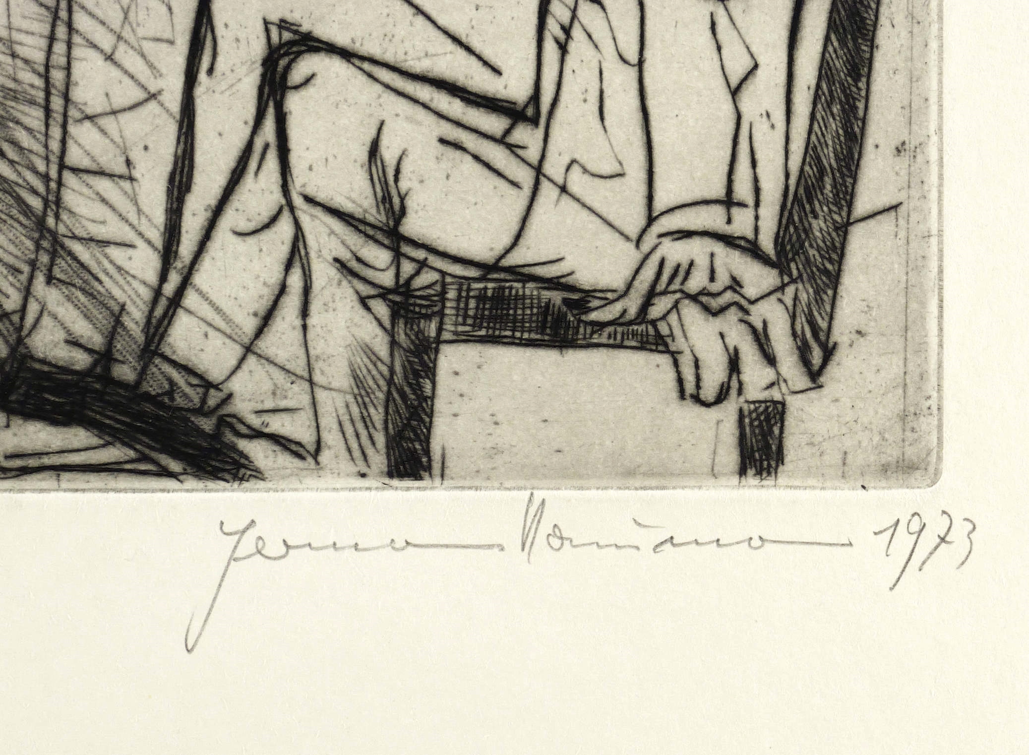 Rechts unten in Bleistift signiert und datiert. Links Auflagenbezeichnung. – Blatt aus der Folge von 10 Radierungen zu den ″Mysterien″ von Knut Hamsun (1973). – Papier leicht gegilbt, an den Rändern etwas bestoßen und knickspurig. Insgesamt guter Zustand.