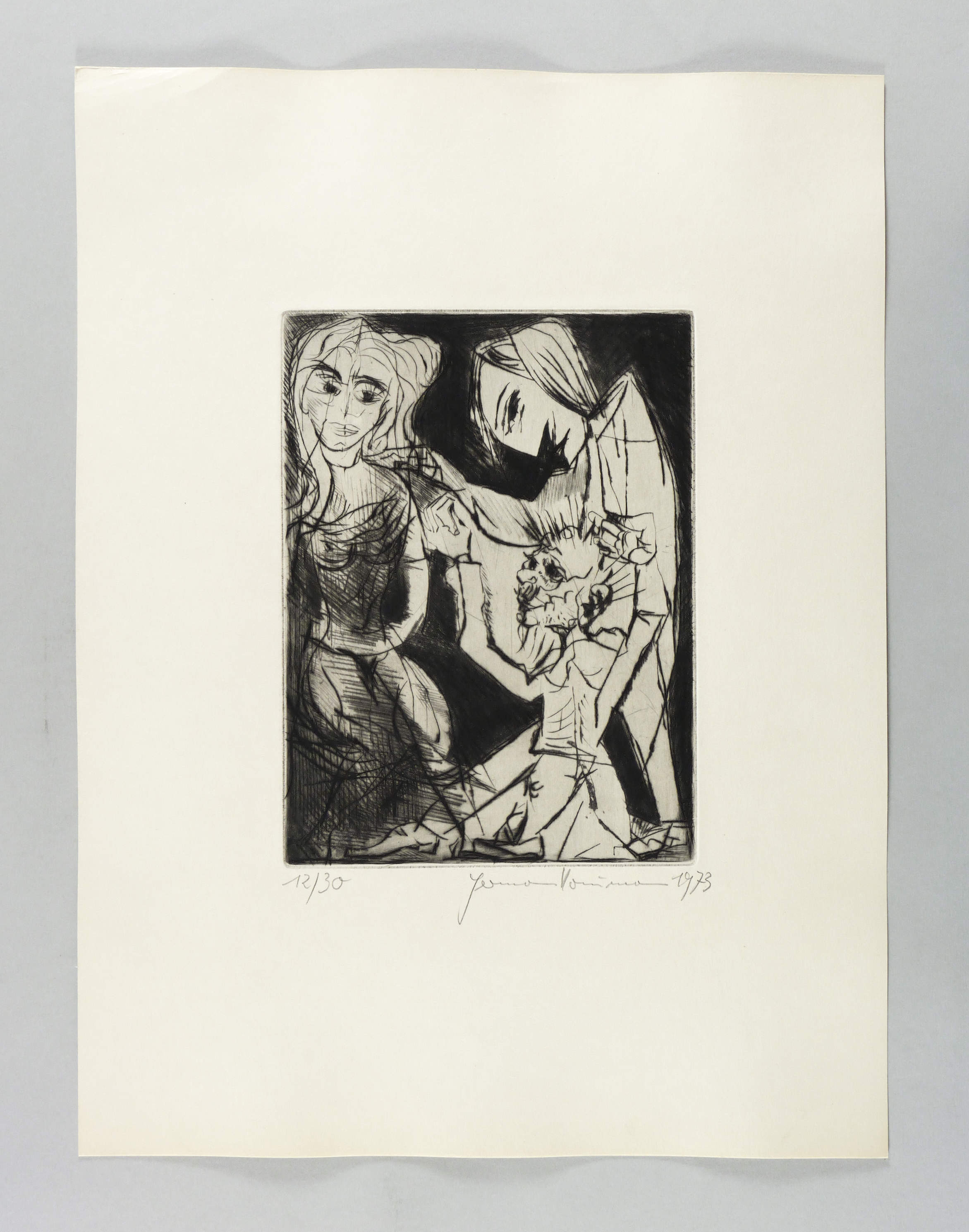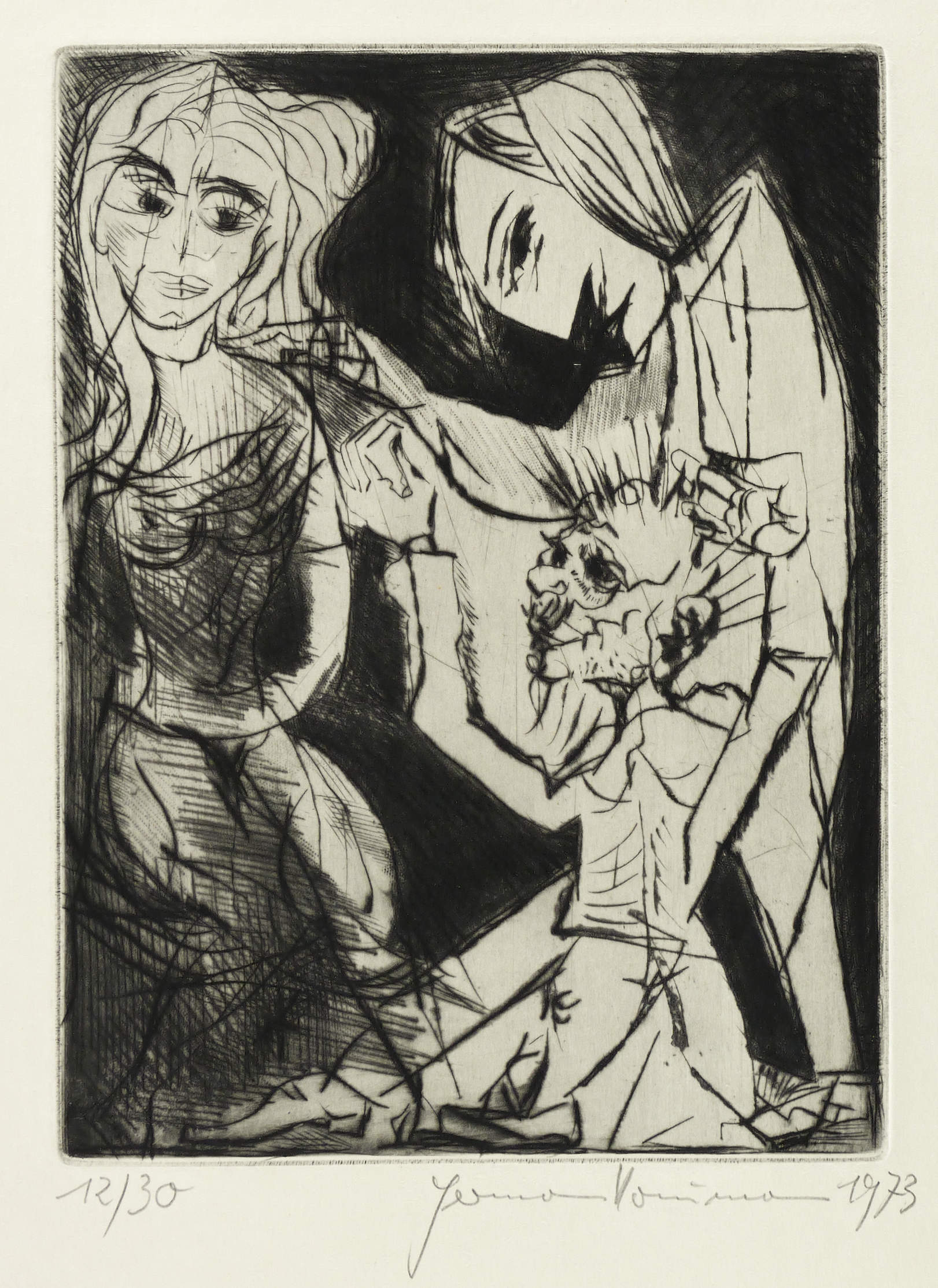 Rechts unten in Bleistift signiert und datiert. Links Auflagenbezeichnung. – Blatt aus der Folge von 10 Radierungen zu den ″Mysterien″ von Knut Hamsun (1973). – Papier leicht gegilbt, an den Rändern etwas bestoßen und knickspurig. Insgesamt guter Zustand.