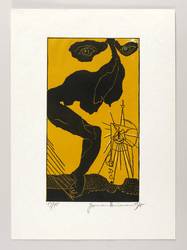 1970. Farbholzschnitt, in 2 Farben, auf grobfasrigem Büttenpapier. – Originale Künstlergrafik, von Hermann Naumann. – Auflage Exemplar Nr. 19/40. – 30,1 x 17,0 cm (Darstellung / Druckstock), 42 x 30 cm (Blatt).