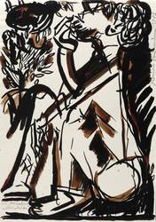 1983. Zeichnung / Pinselzeichnung, in brauner & schwarzer Tusche, auf hellem Karton. – Originale Künstlergrafik, von Hermann Naumann. – Unikat. – 42,5 x 30,1 cm (Darstellung / Blatt).