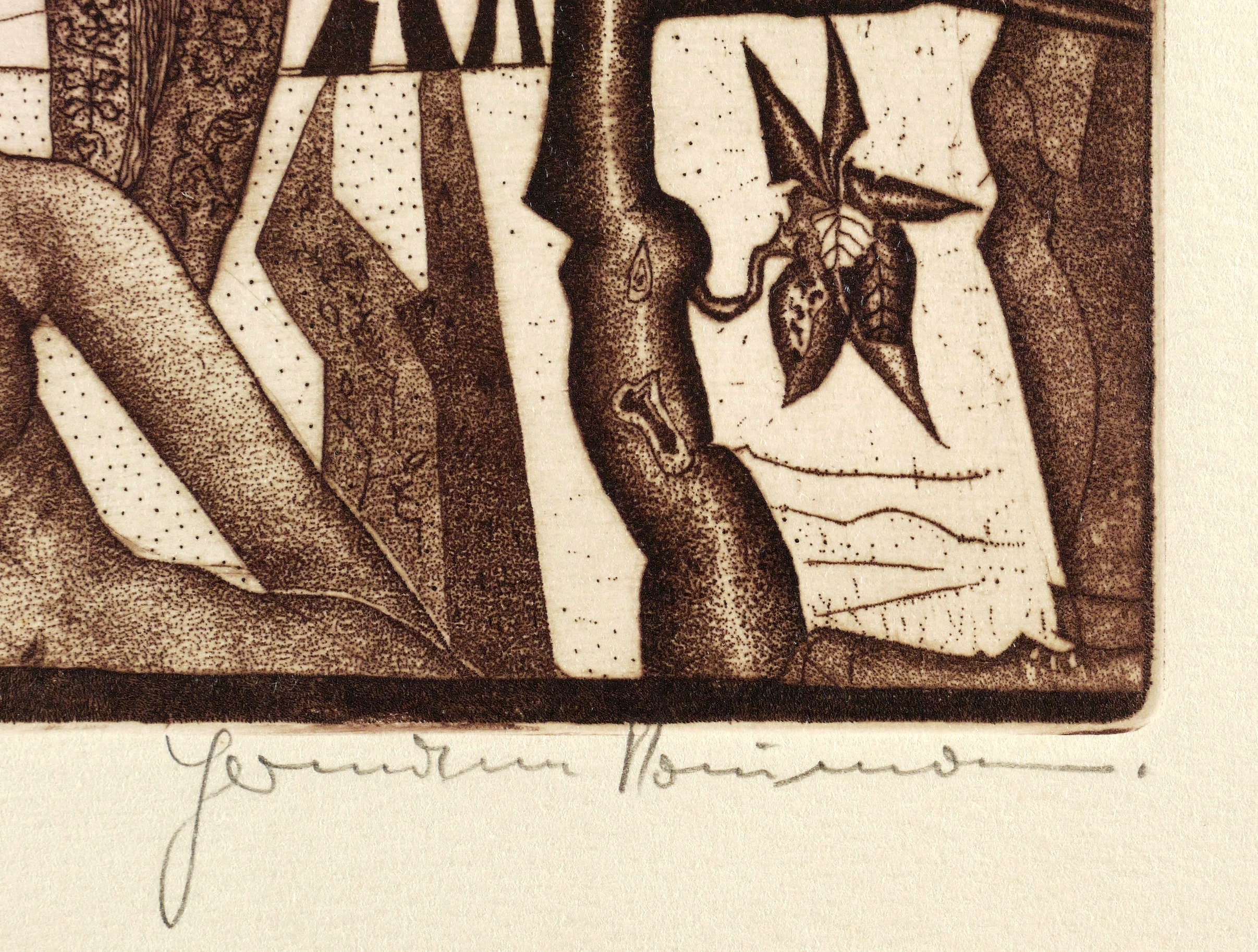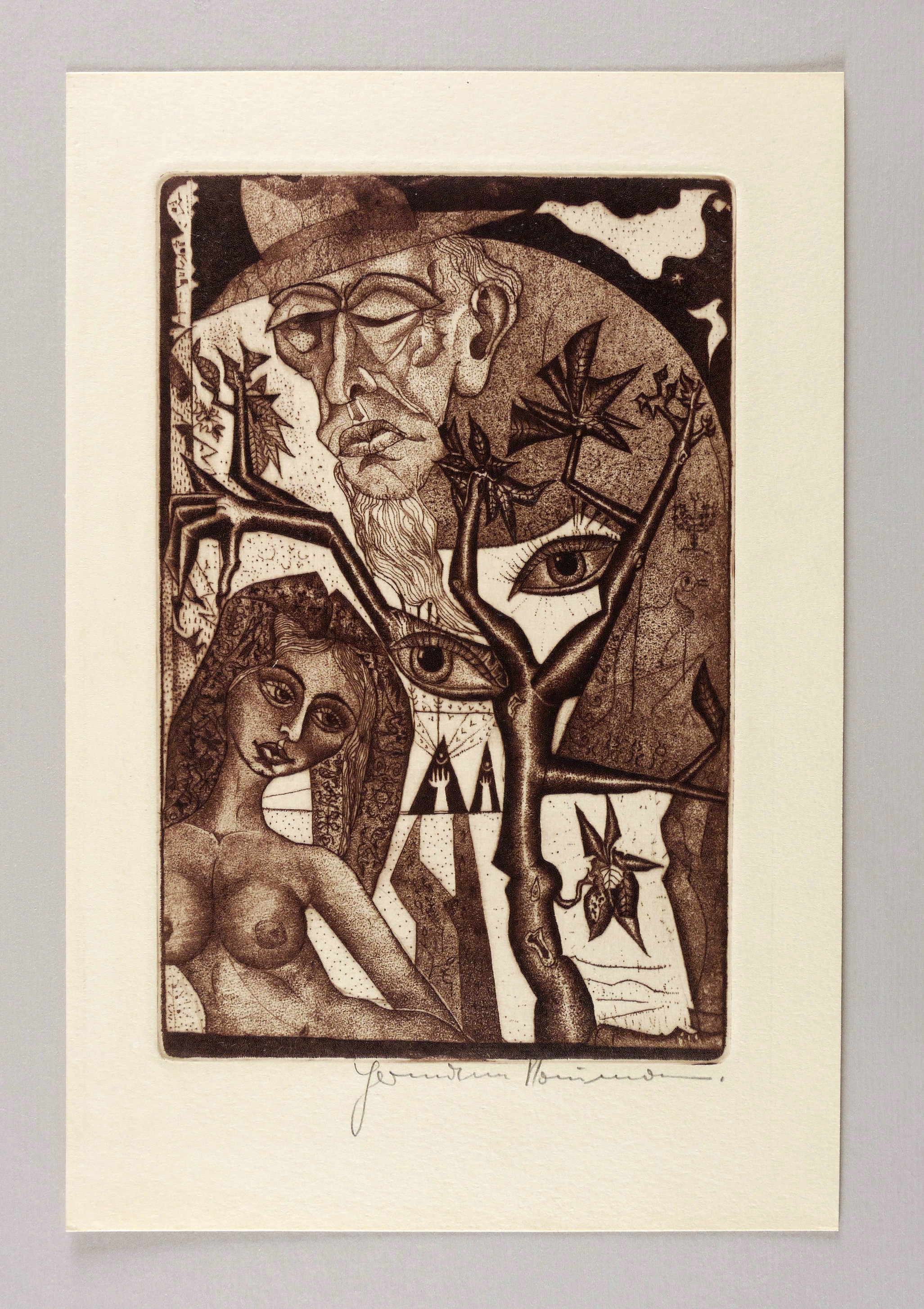 1966/1967. Kupferstich / Punzenstich, in Violettschwarz, auf hartem gelblichem Kupferdruckpapier. – Originale Künstlergrafik, von Hermann Naumann. – 23,8 x 15,4 cm (Darstellung / Platte), 31 x 21 cm (Blatt).