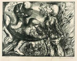 1976. Lithografie / Kreidelithografie, in Schwarz, auf hartem gelblichem Maschinenpapier. – Originale Künstlergrafik, von Hermann Naumann. – Auflage Exemplar Nr. 19/30. – 32,2 x 42,0 cm (Darstellung / Druckbild), 48 x 64 cm (Blatt).