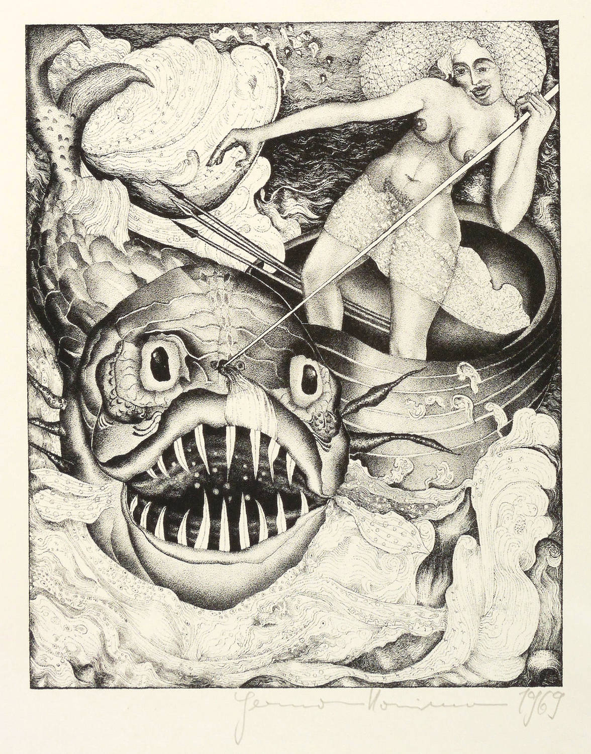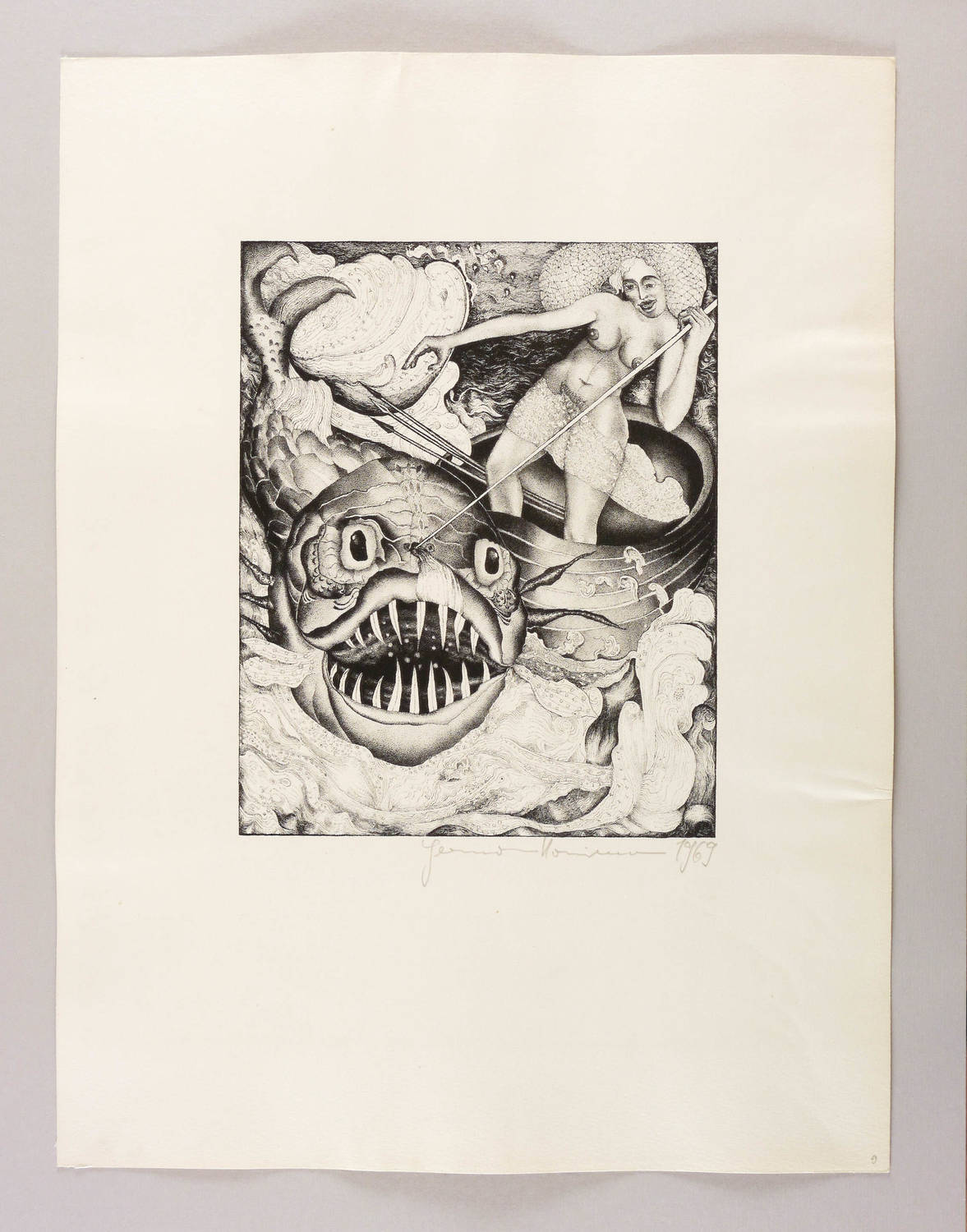 1969. Lithografie / Federlithografie, in Punktiermanier, in Schwarz, auf hartem hellchamois Velin. – Originale Künstlergrafik, von Hermann Naumann. – Künstlerexemplar (e.a.). – 26,7 x 21,4 cm (Darstellung / Druckbild), 50 x 38 cm (Blatt).