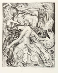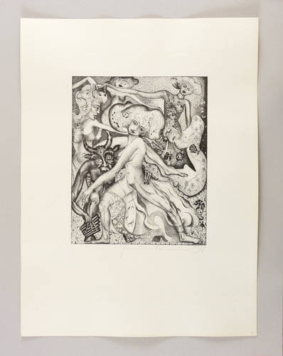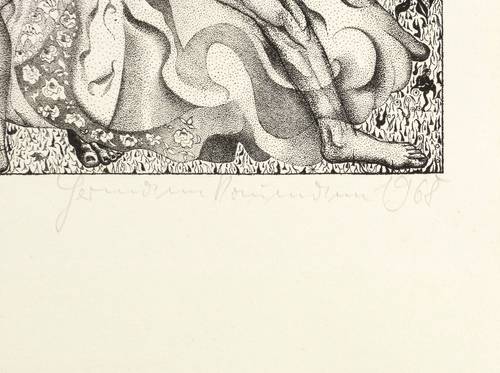 1968. Lithografie / Federlithografie, in Punktiermanier, in Schwarz, auf hartem hellchamois Velin. – Originale Künstlergrafik, von Hermann Naumann. – Künstlerexemplar (e.a.). – 26,5 x 21,4 cm (Darstellung / Druckbild), 50 x 38 cm (Blatt).
