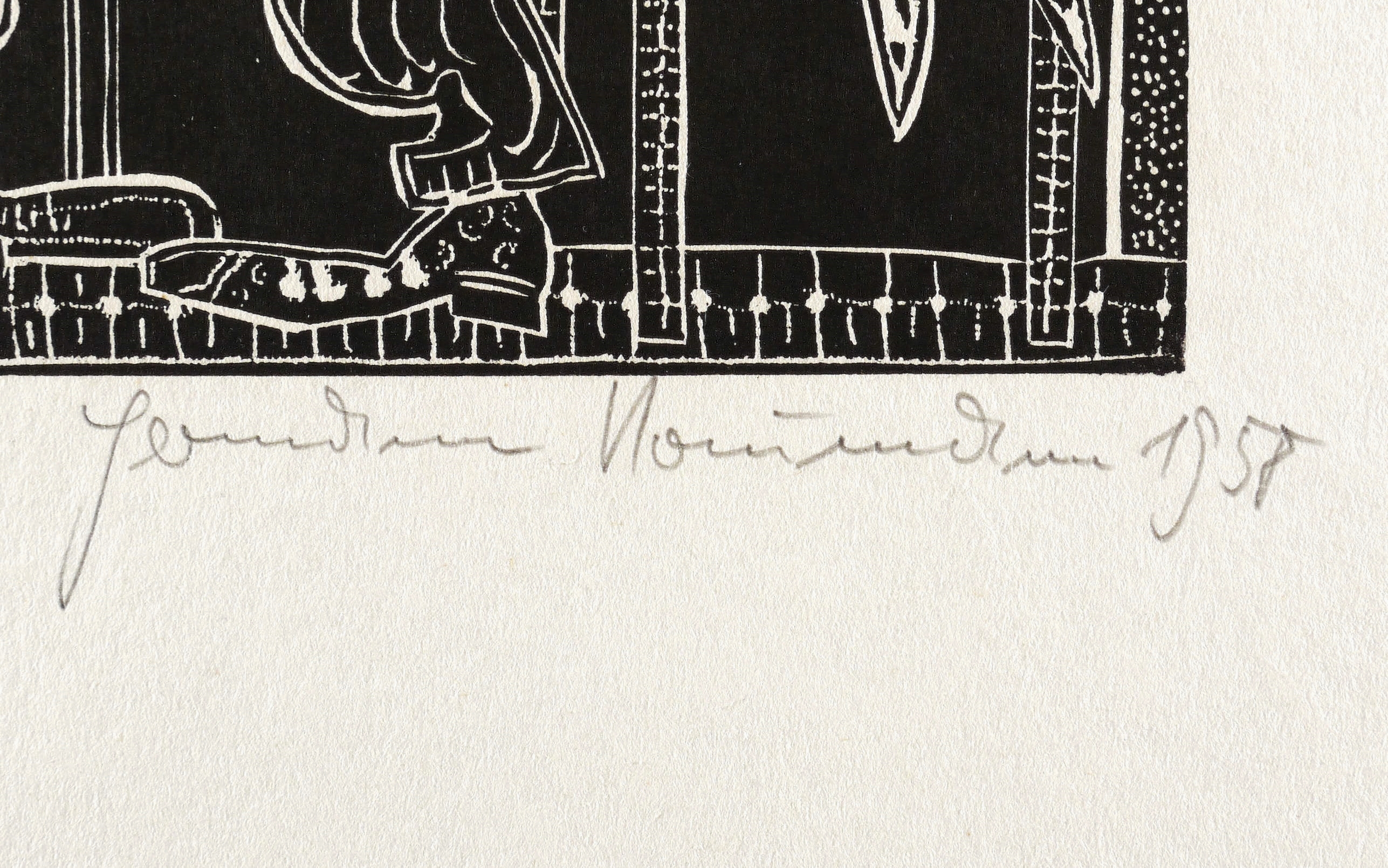 1958. Holzschnitt, in Schwarz, auf rauem wolkigem chamois Velin. – Originale Künstlergrafik, von Hermann Naumann. – 28,0 x 24,2 cm (Darstellung / Druckstock), 44 x 31 cm (Blatt).