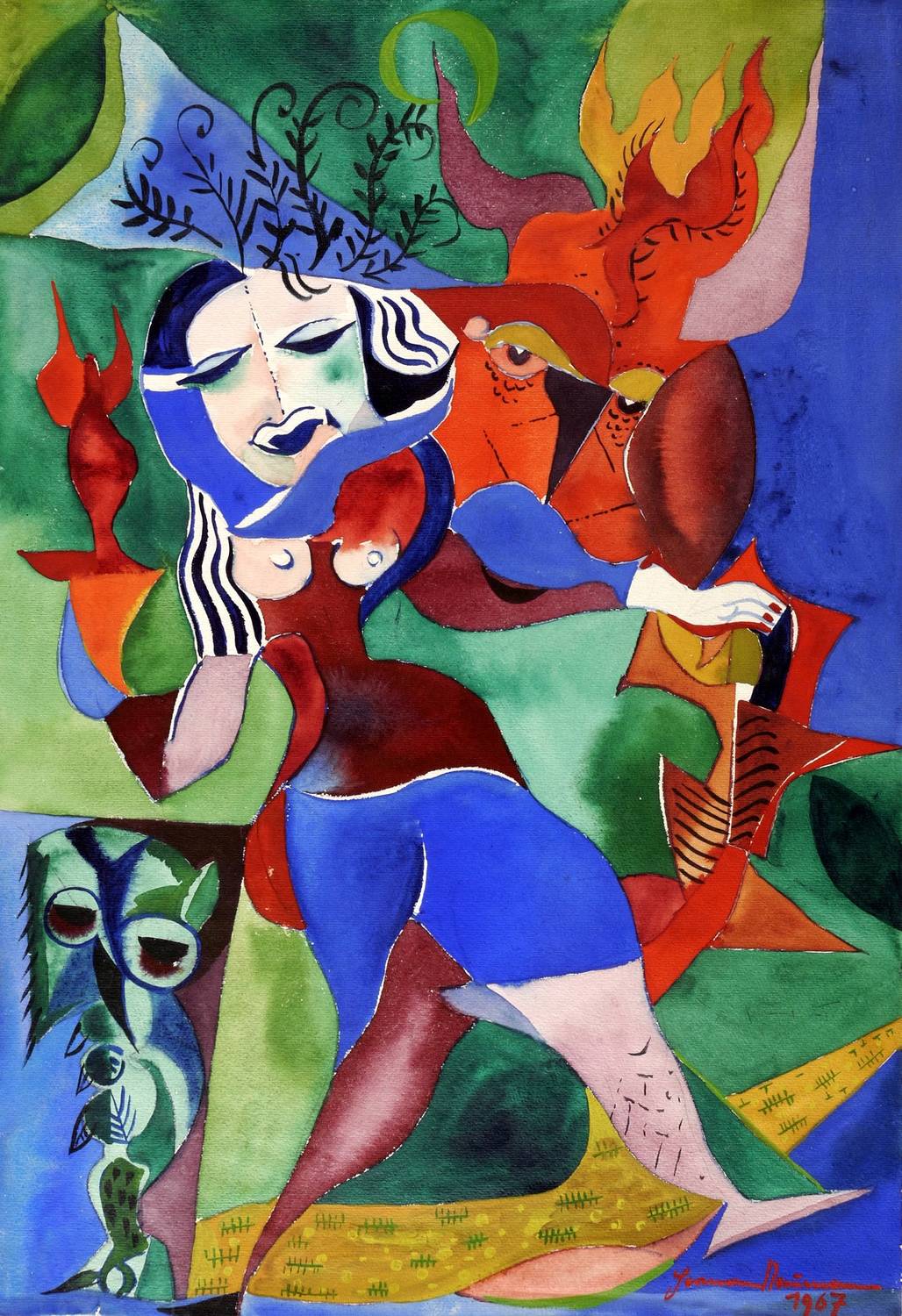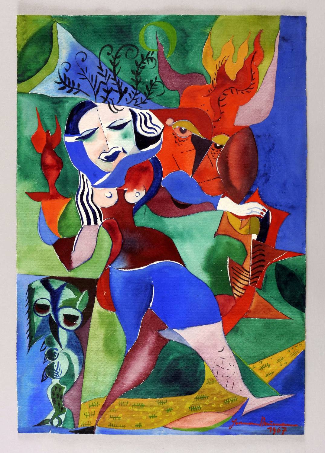 1967. Aquarell, mit schwarzer Tusche, auf C.M-Fabriano-Aquarellkarton. – Originale Künstlergrafik, von Hermann Naumann. – 52,1 x 36,0 cm (Darstellung / Blatt).