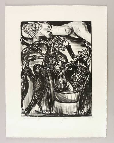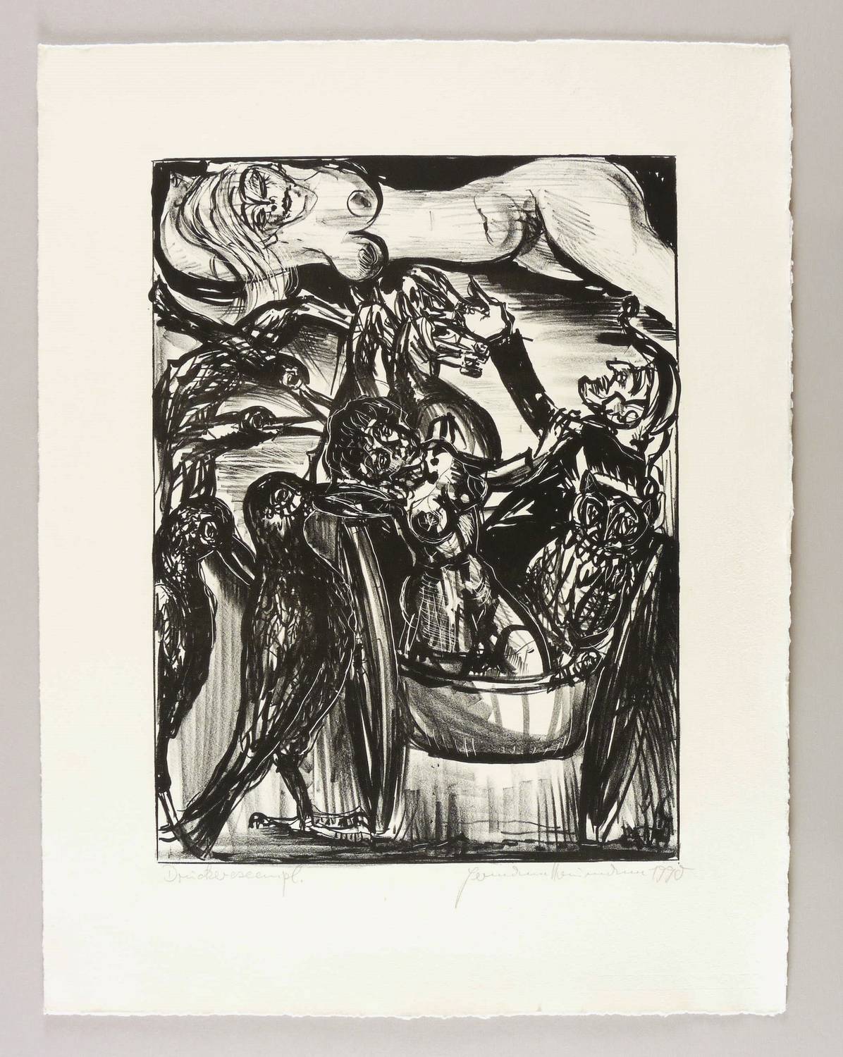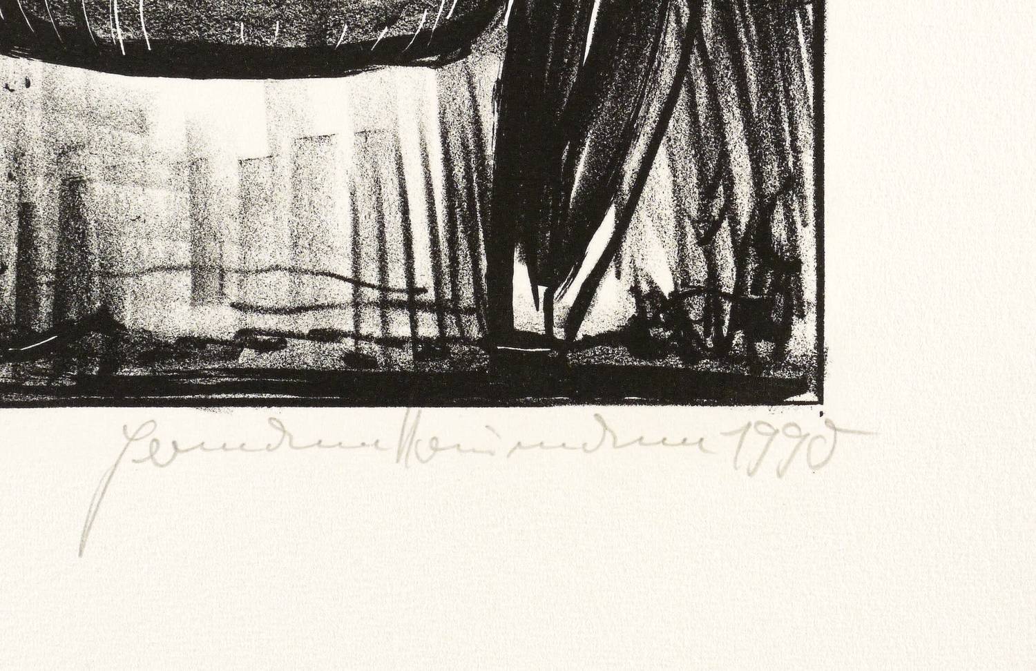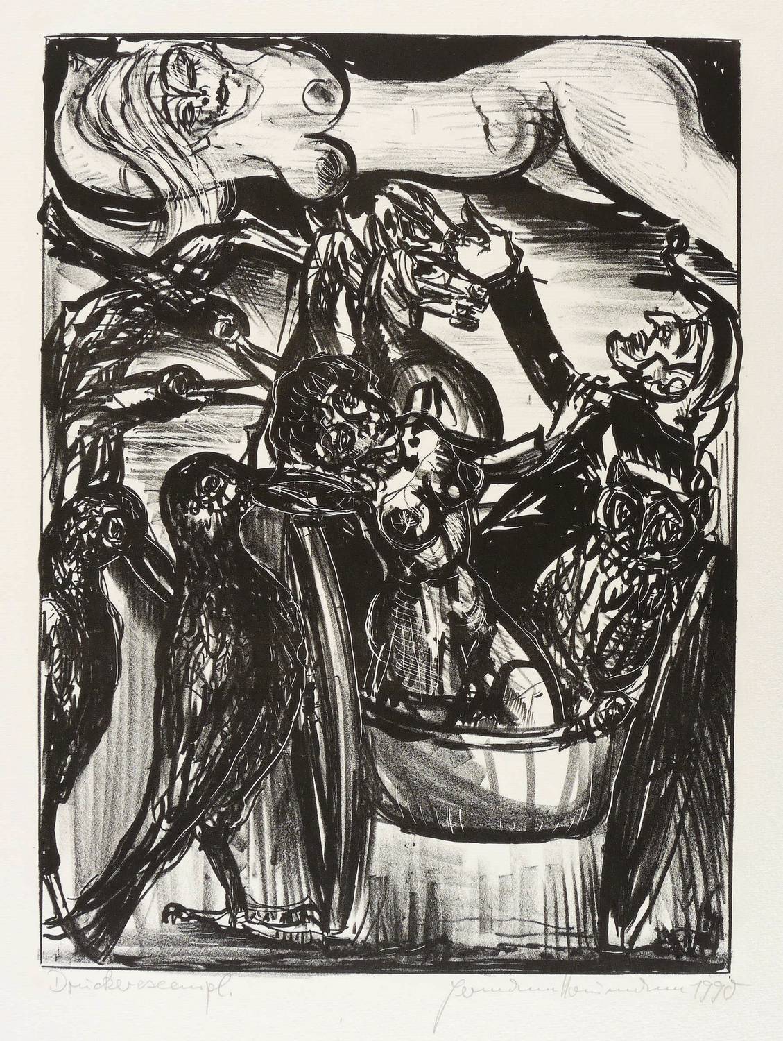 1990. Lithografie / Kreide- & Pinsellithografie, partiell geschabt, in Schwarz, auf hellem Hahnemühle. – Originale Künstlergrafik, von Hermann Naumann. – Druckerexemplar. – 47,4 x 35,1 cm (Darstellung / Stein), 65 x 50 cm (Blatt).