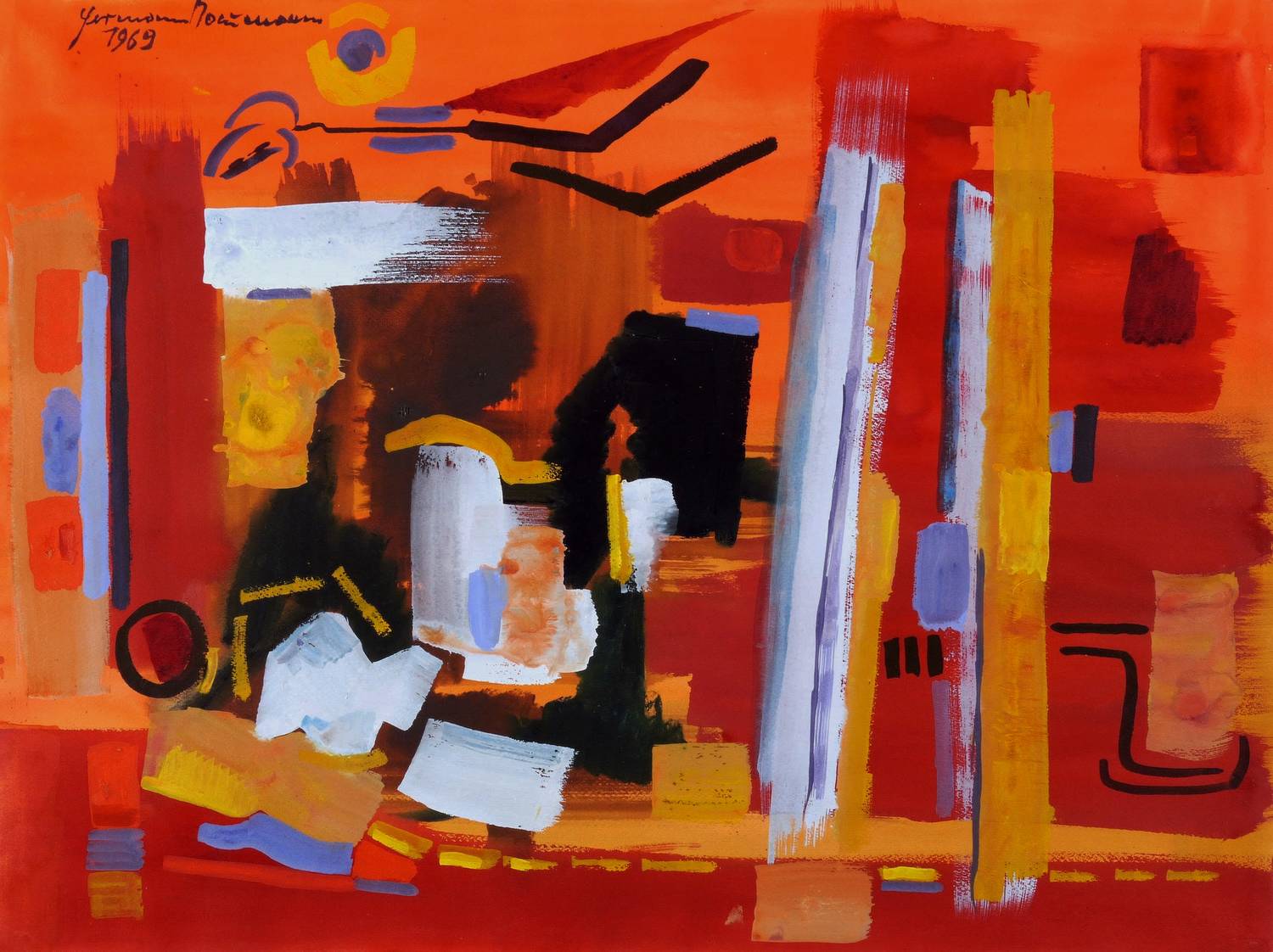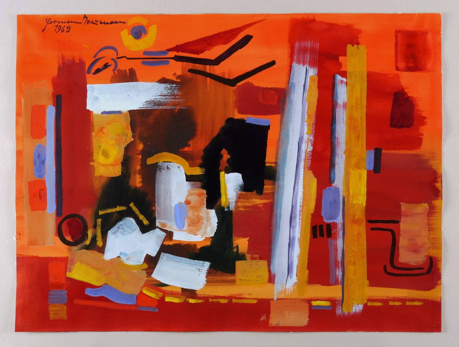 1969. Aquarell, mit Gouache, auf C.M-Fabriano-Aquarellkarton. – Originale Künstlergrafik, von Hermann Naumann. – Unikat. – 56,3 x 74,9 cm (Darstellung / Blatt).