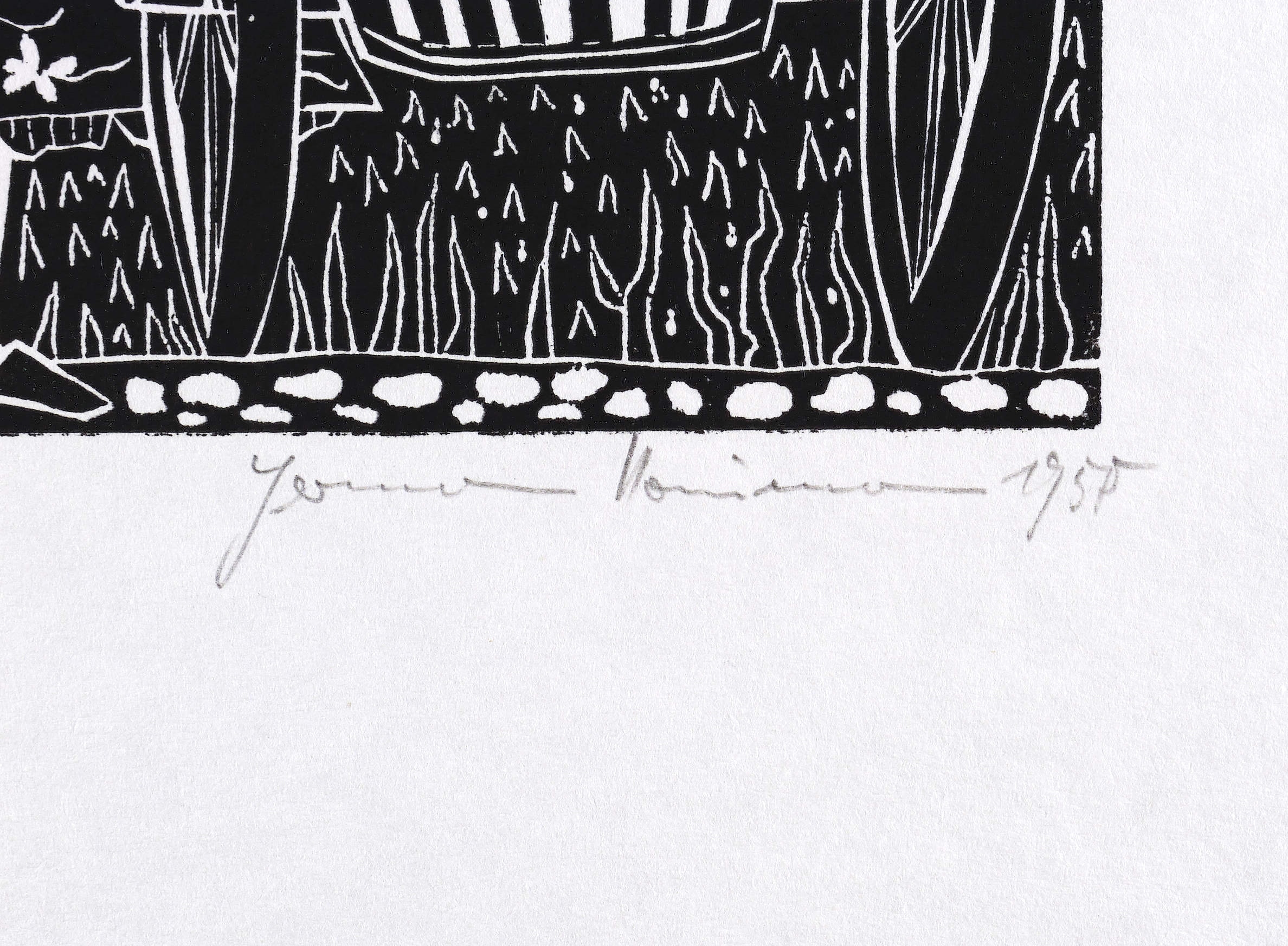 1958. Holzschnitt, in Schwarz, auf rauem wolkigem hellem Velin. – Originale Künstlergrafik, von Hermann Naumann. – AUflage Exemplar Nr. 11/25. – 28,0 x 24,2 cm (Darstellung / Druckstock), 49 x 39 cm (Blatt).