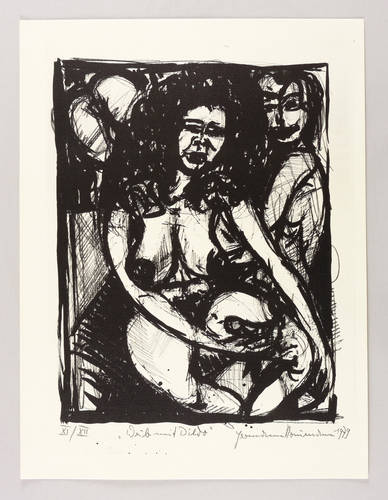 Rechts unten in Bleistift signiert und datiert: ″Hermann Naumann 1979″. Links unten eigenhändige Auflagenbezeichnung: ″XI/XII″. Dazu Titel: ″Weib mit Dildo″. – Ohne Mangel. Sehr guter Zustand.