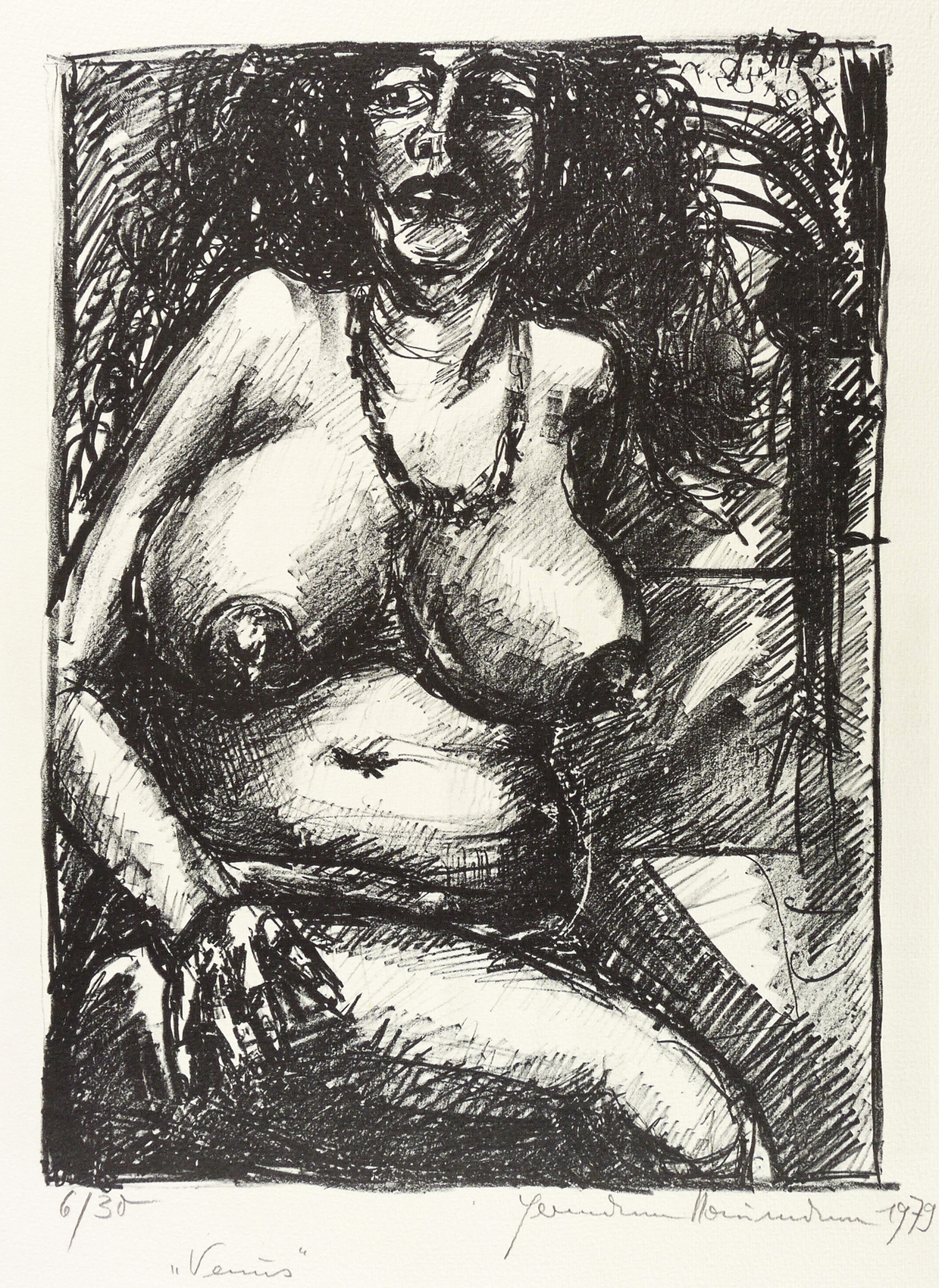 Rechts unten in Bleistift signiert und datiert: ″Hermann Naumann 1979″. Links unten eigenhändige Auflagenbezeichnung: ″6/30″. Dazu Titel: ″Venus″. Im Stein rechts oben Signatur und Jahr: ″H.N. 79″. – Ohne Mangel. Sehr guter Zustand.