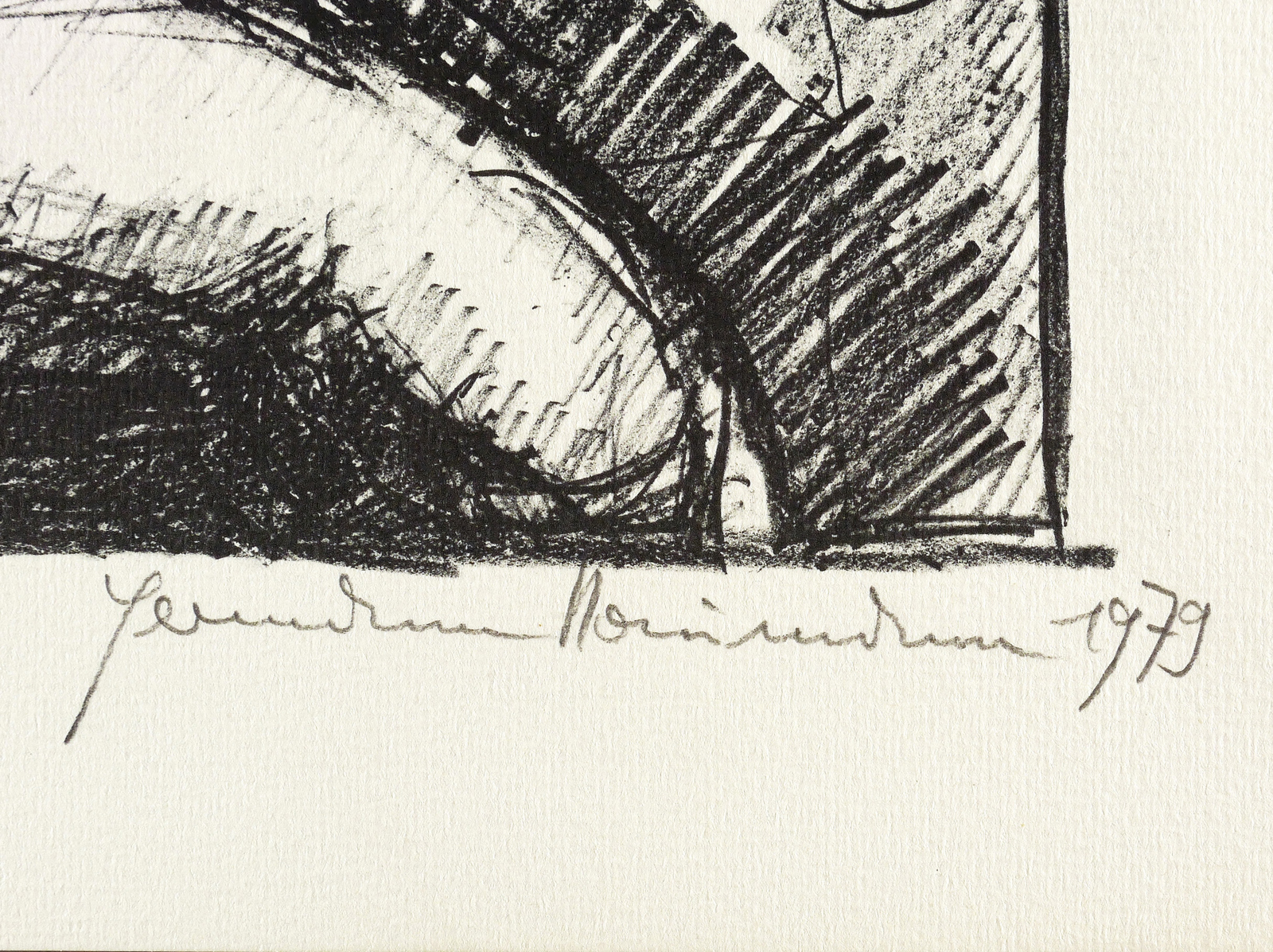 1979. Lithografie / Kreidelithografie, in Schwarz, auf hartem hellchamois Velin. – Originale Künstlergrafik, von Hermann Naumann. – Auflage Exemplar Nr. 6/30. – 39,8 x 29,4 cm (Darstellung / Druckbild), 50 x 37 cm (Blatt).