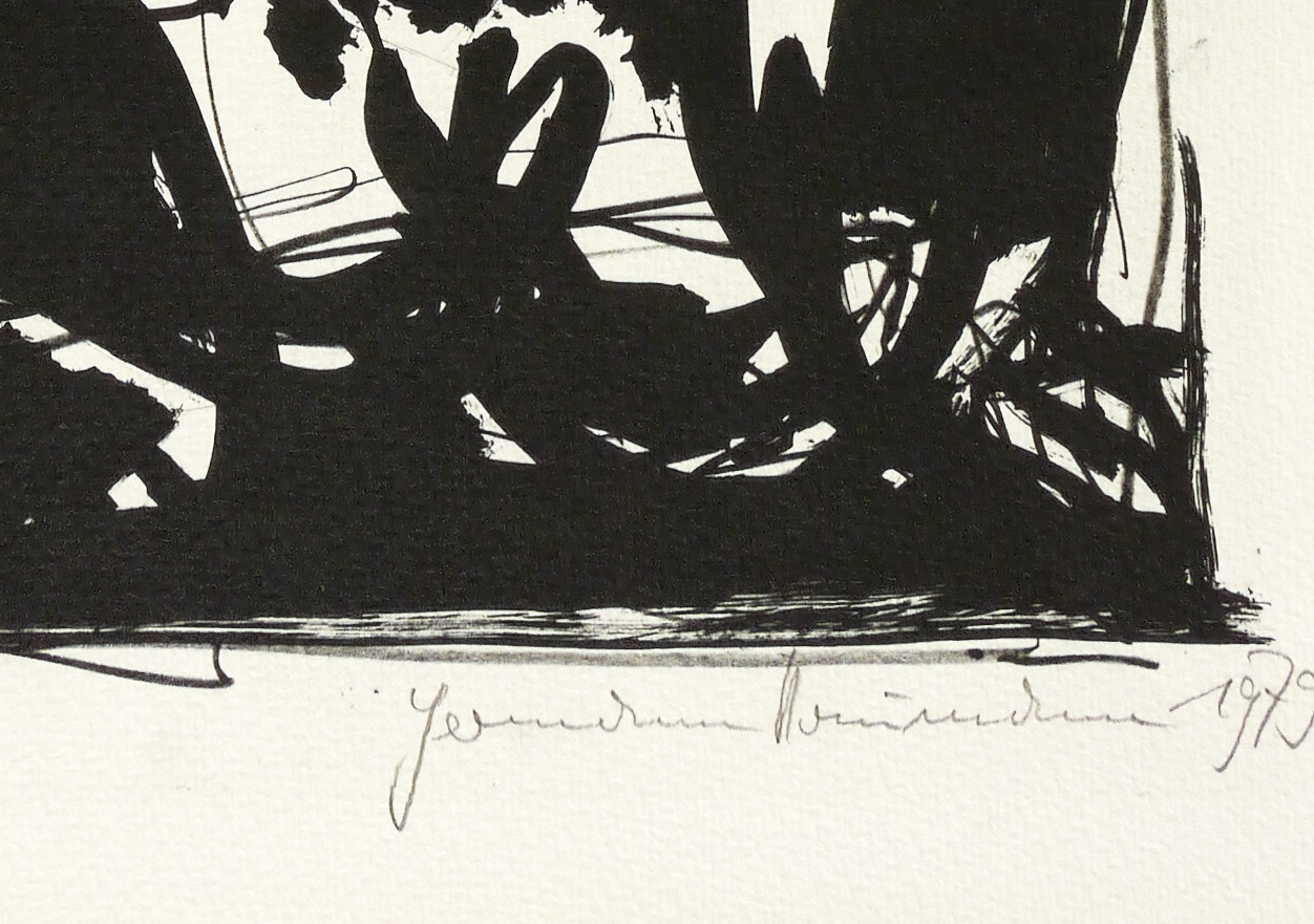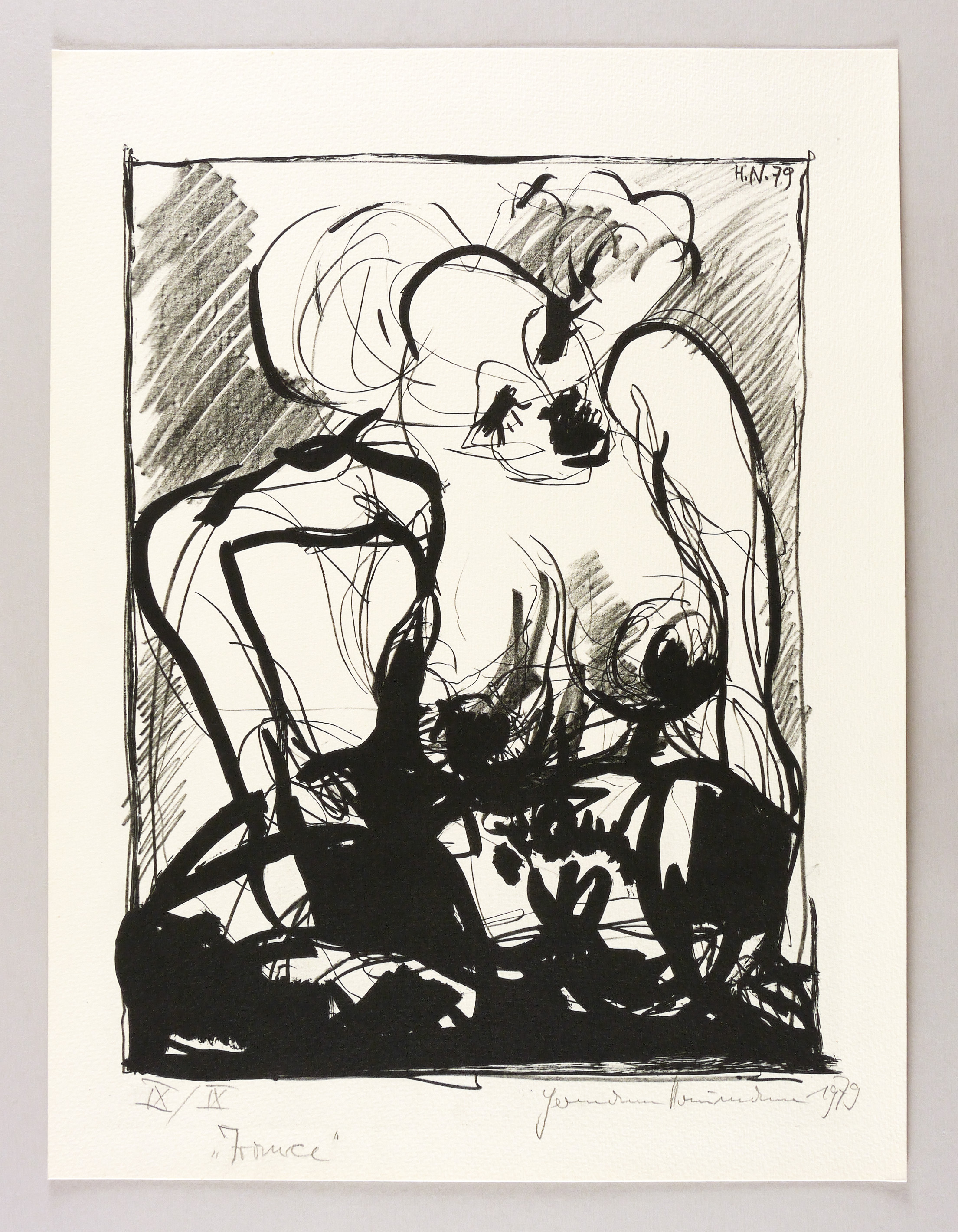 1979. Lithografie / Pinsel- & Kreidelithografie, in Schwarz, auf hartem hellchamois Velin. – Originale Künstlergrafik, von Hermann Naumann. – Auflage Exemplar Nr. IX/XI. – 40,6 x 31,6 cm (Darstellung / Druckbild), 49 x 37 cm (Blatt).