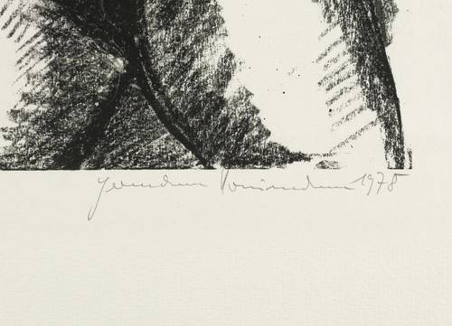 1978. Lithografie / Kreidelithografie, partiell geschabt, in Schwarz, auf gelblichem Karton. – Originale Künstlergrafik, von Hermann Naumann. – Auflage Exemplar Nr. 1/25. – 41,5 x 30,5 cm (Darstellung / Druckbild), 66 x 47 cm (Blatt).