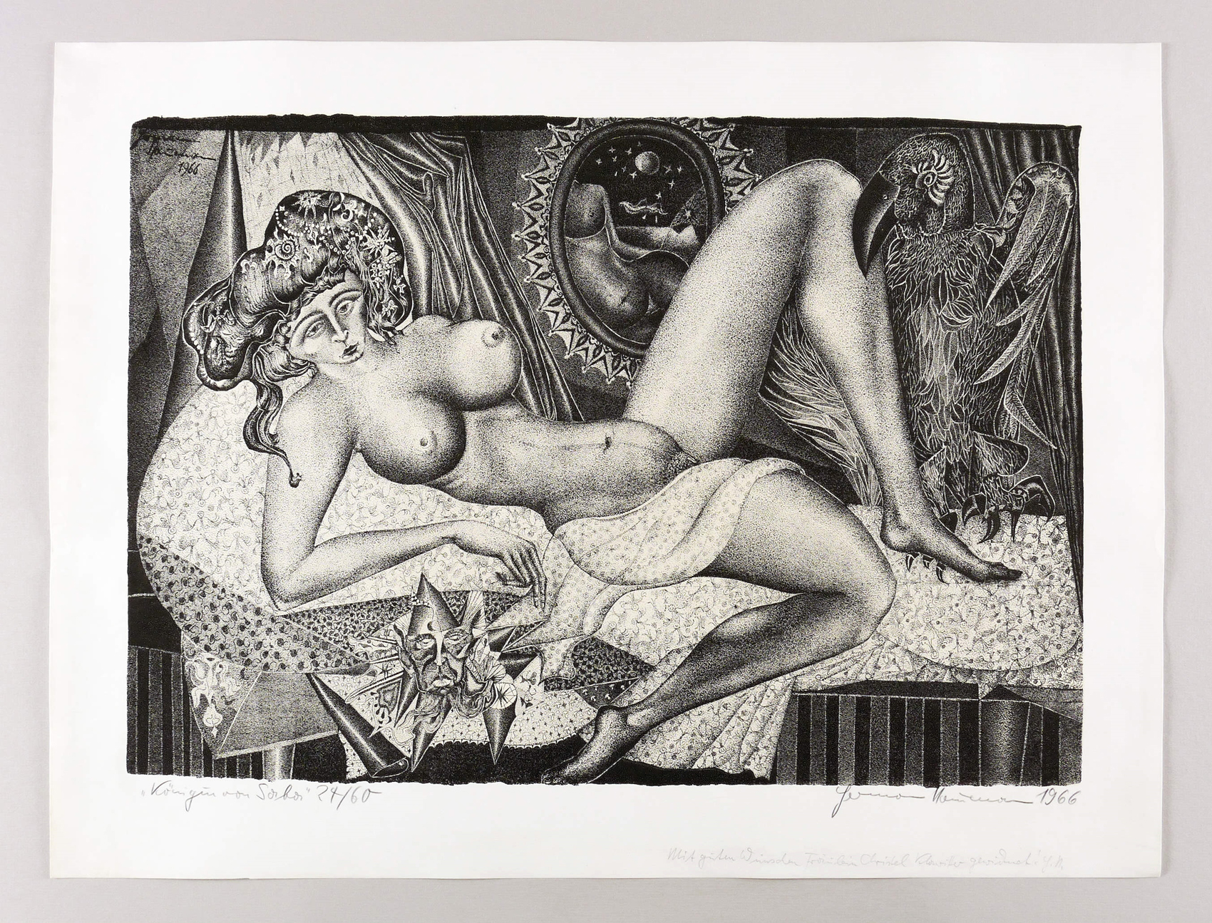 1966. Lithografie / Federlithografie, in Punktiermanier, in Schwarz, auf hellem Velin. – Originale Künstlergrafik, von Hermann Naumann. – Auflage Exemplar Nr. 24/60. – 42,0 x 59,5 cm (Darstellung / Druckbild), 53 x 70 cm (Blatt).