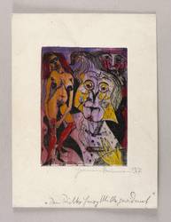 1967. Kupferstich / Punzenstich & Kaltnadel, in Schwarz, aquarelliert, auf gelblichem Karton. – Originale Künstlergrafik, von Hermann Naumann. – Unikat. – 16,2 x 11,7 cm (Darstellung / Platte), 26 x 20 cm (Blatt).