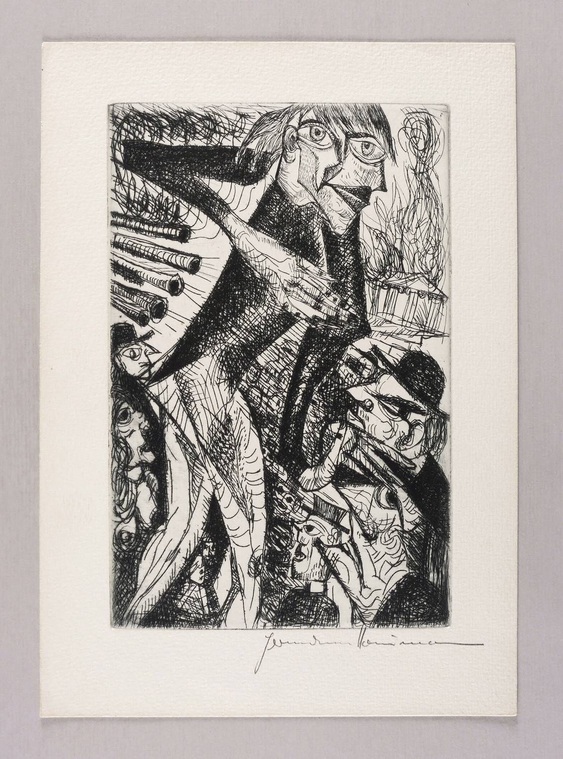 1976. Radierung / Strichätzung, in Schwarz, auf hellchamois Velinkarton. – Originale Künstlergrafik, von Hermann Naumann. – Künstlerexemplar (e.a.). – 23,2 x 15,0 cm (Darstellung / Platte), 30 x 21 cm (Blatt).