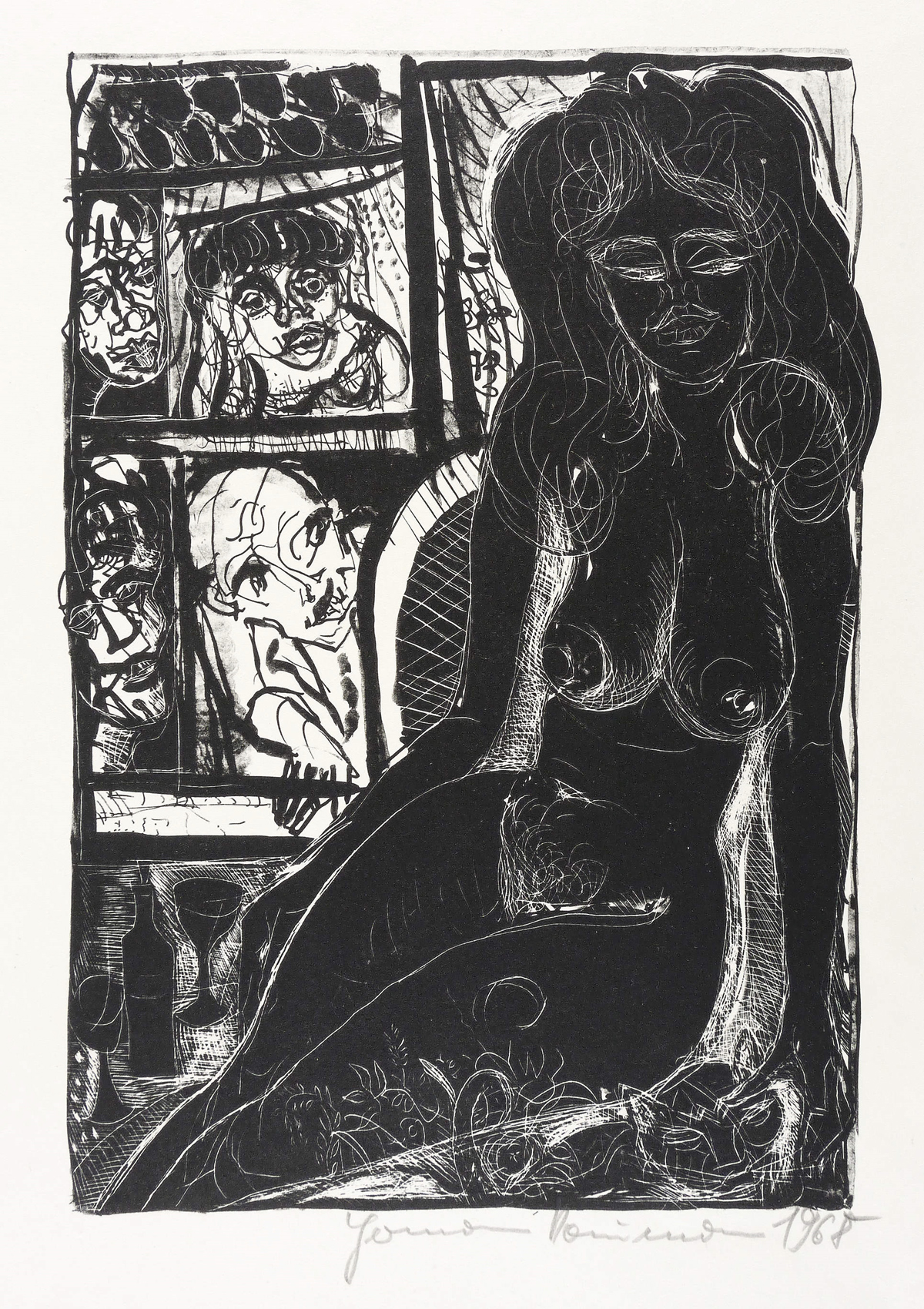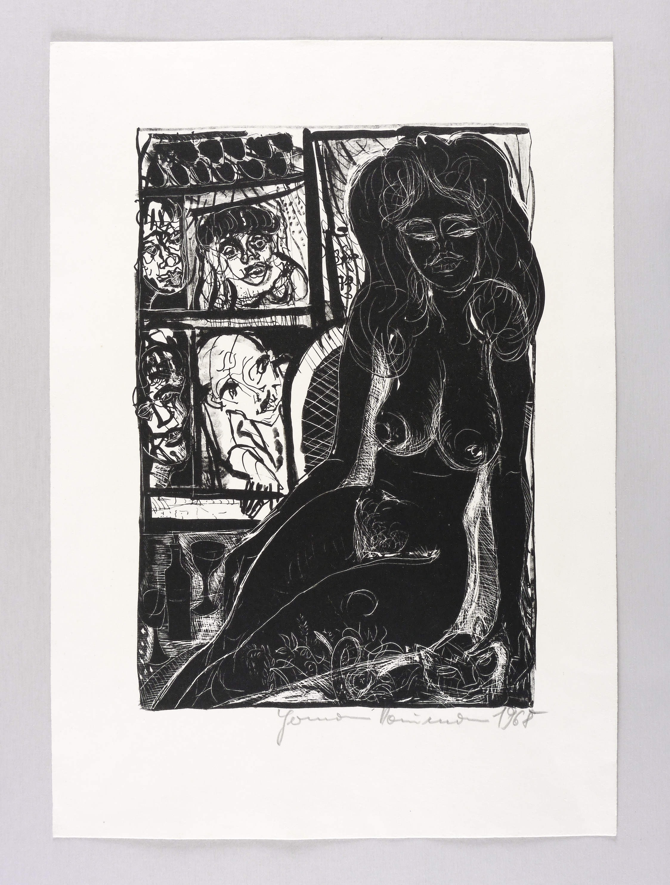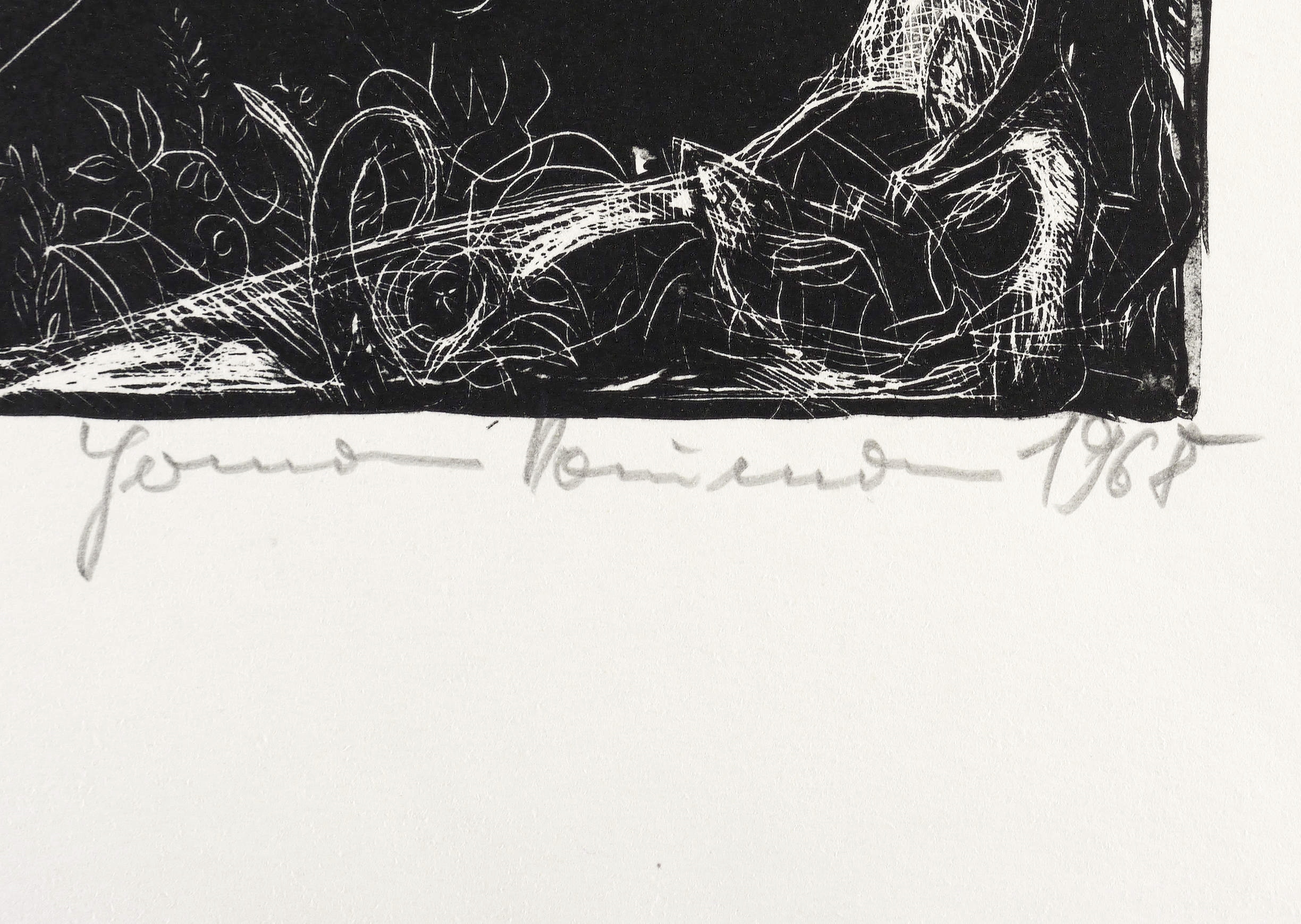 1968. Lithografie / Pinsellithografie, partiell geschabt, auf gelblichem Velin. – Originale Künstlergrafik, von Hermann Naumann. – 31,0 x 21,7 cm (Darstellung), 43 x 30 cm (Blatt).