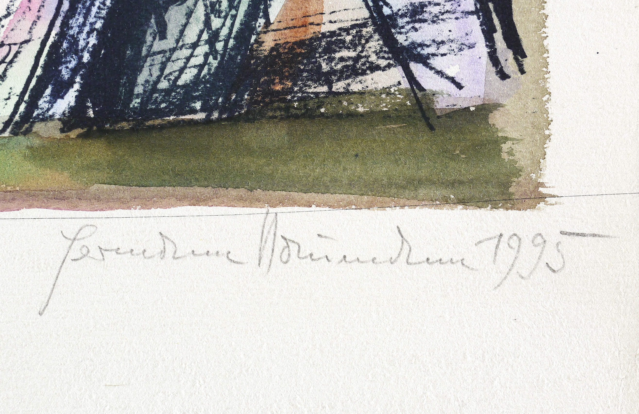 1995. Lithografie / Kreidelithografie, in Schwarz, aquarelliert, auf weichem hellchmois Velin. – Originale Künstlergrafik, von Hermann Naumann. – Probedruck / Unikat. – 36,4 x 26,2 cm (Darstellung), 48 x 31 cm (Blatt).